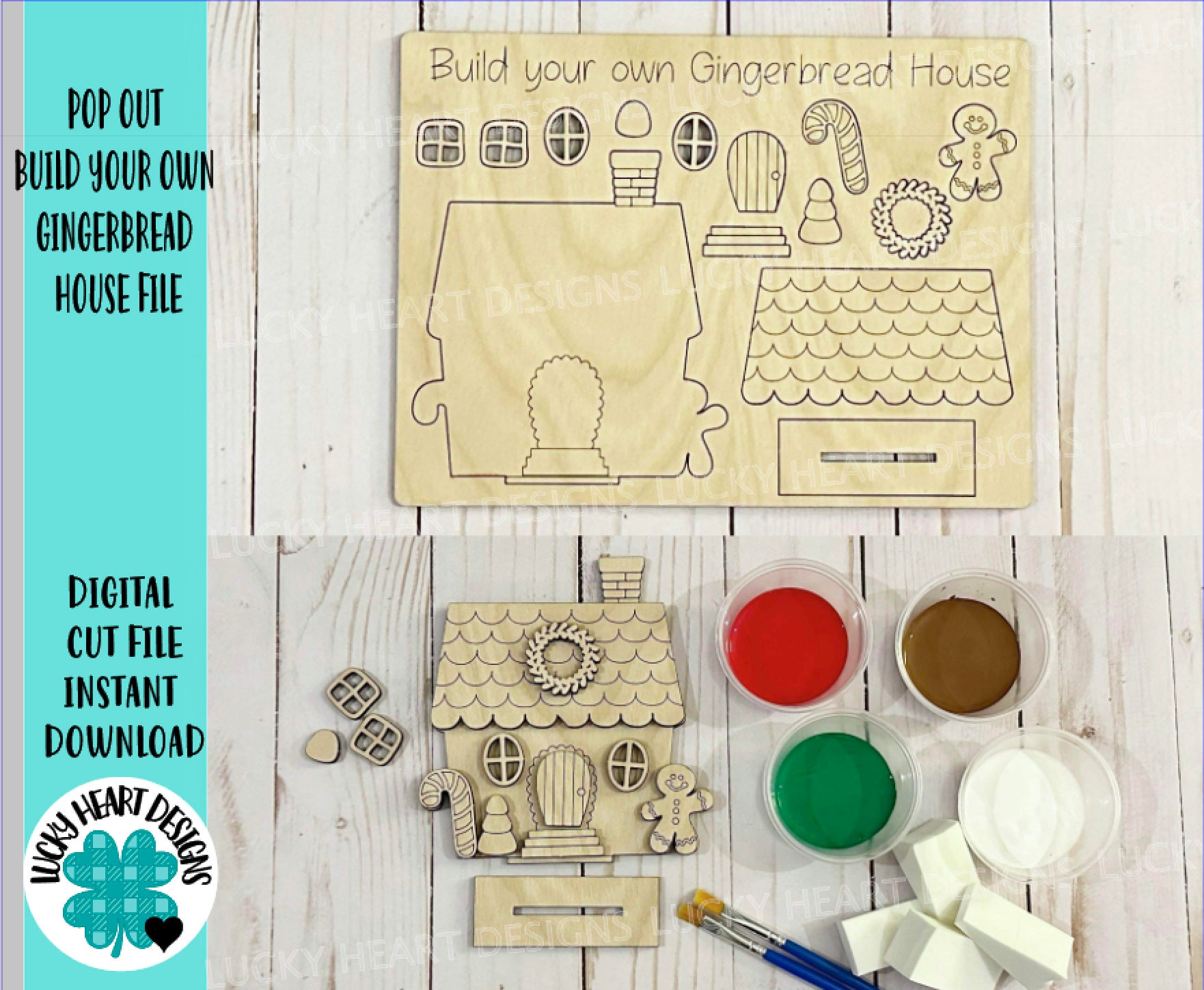 • Pop Out Build Your Own Gingerbread House Craft Kit File SVG, Christ...