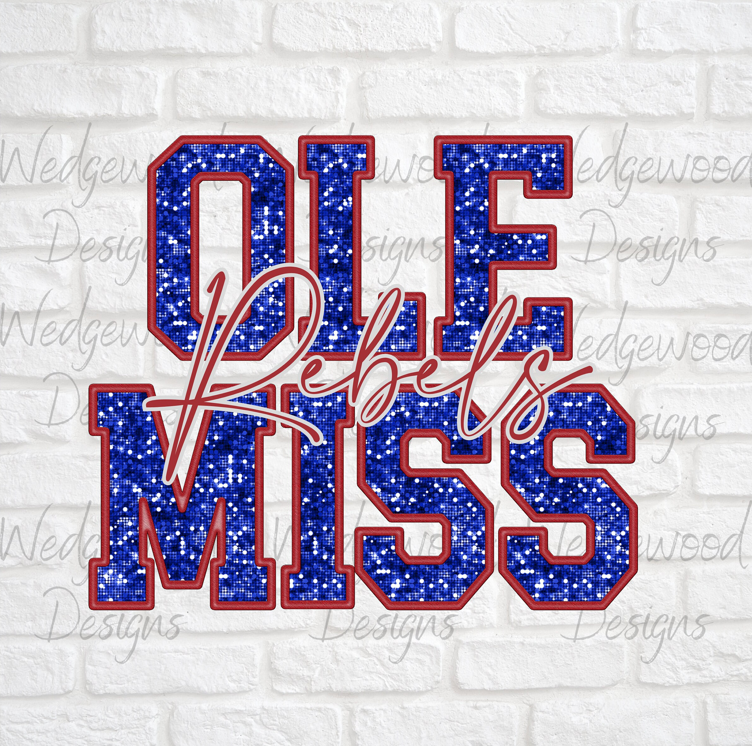 Sequin Ole Miss PNG Rebels Design File for DTF, Heat Transfer or Su...