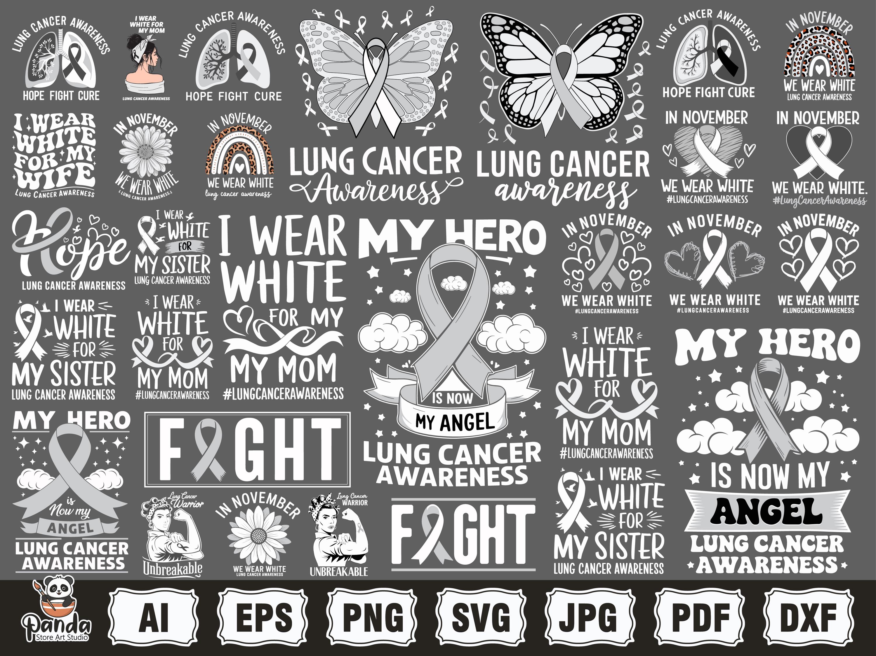 Lung Cancer Support svg png Bundle, White Ribbon, Lung Cancer Fight...