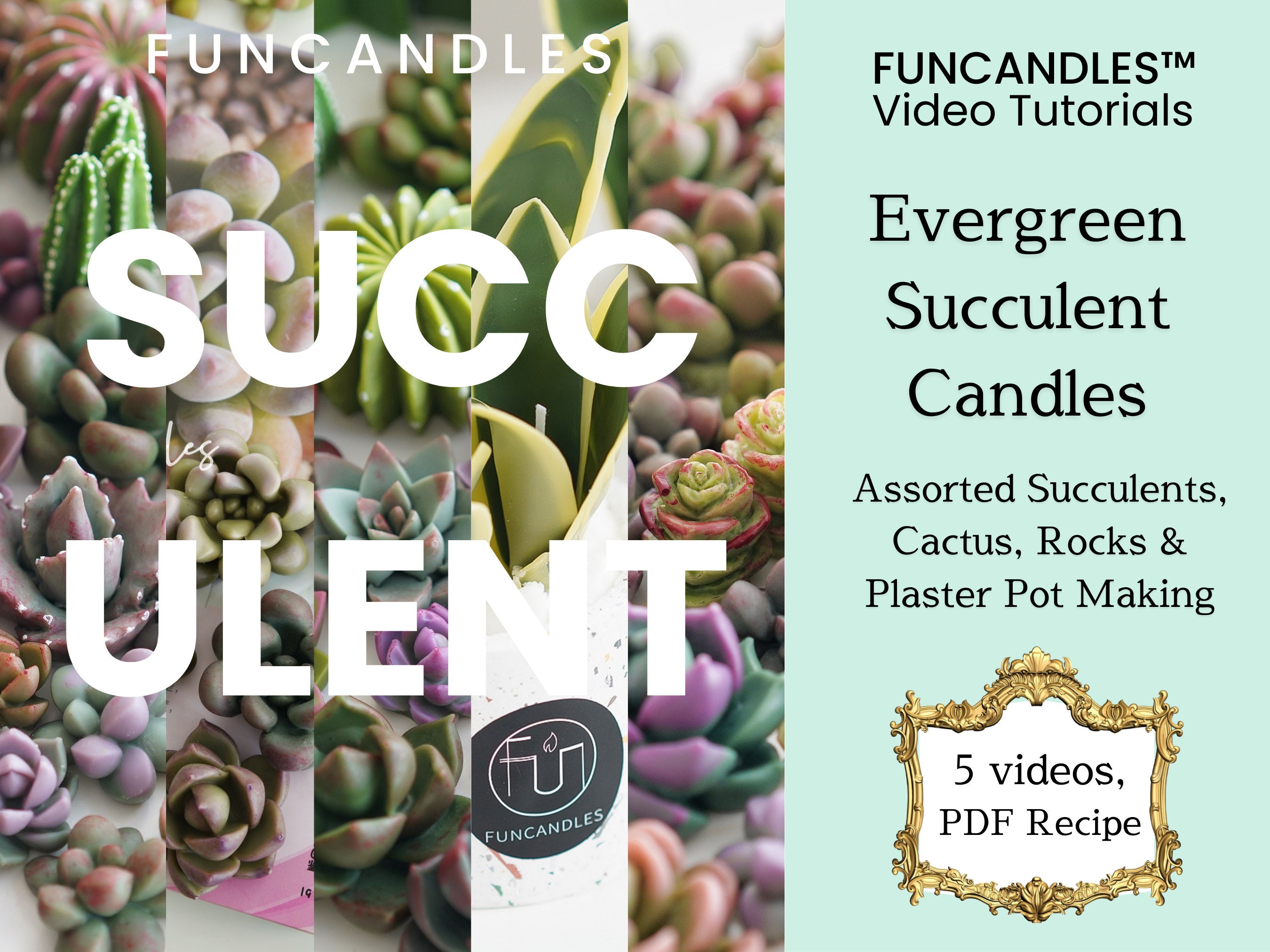 FUNCANDLES | Flower Candles | Evergreen Succulent Candles This digital listing includes: 5 PDF recip...