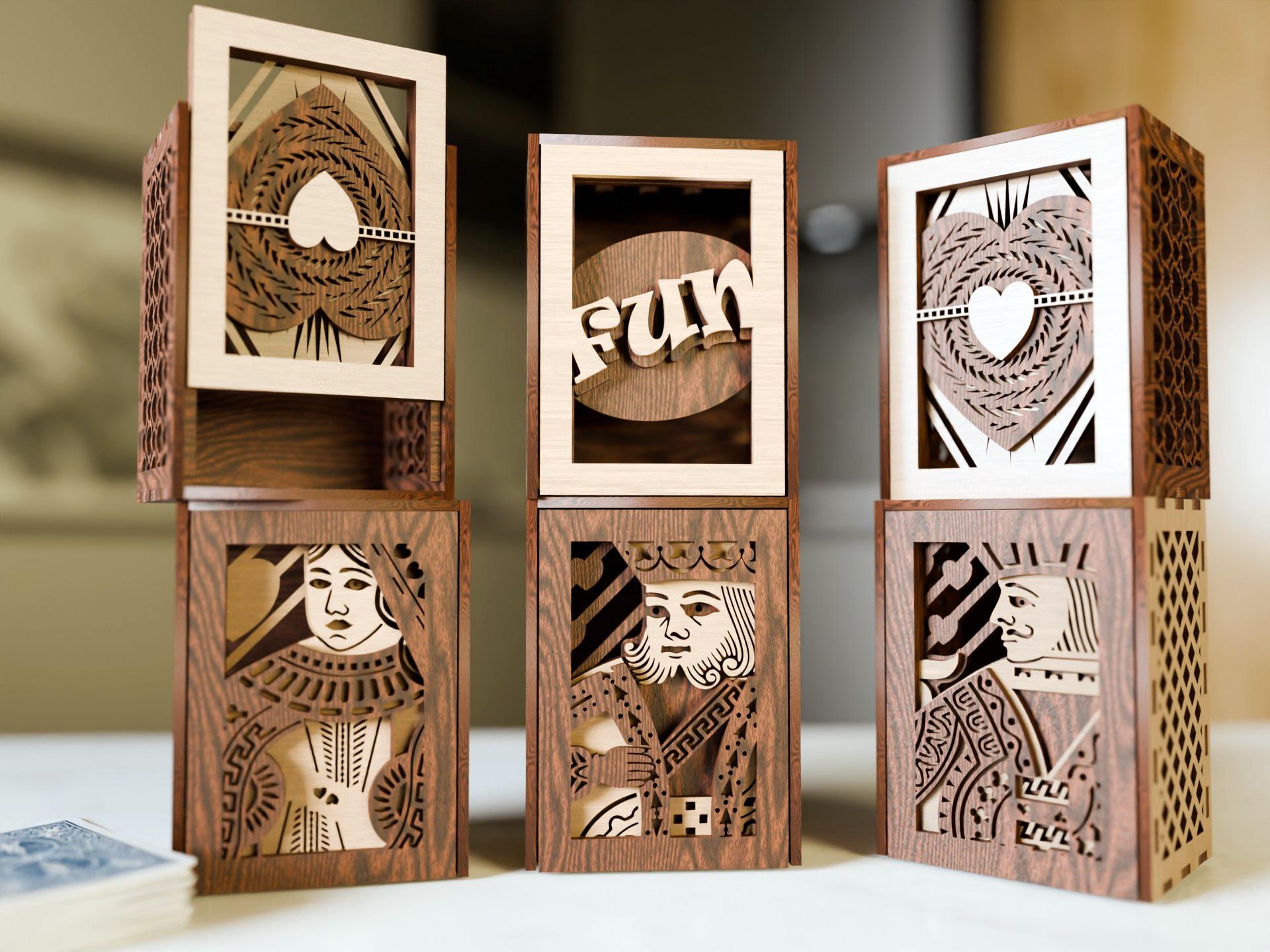 Decorative Wooden boxes with playing card design card case, Birthday box Fathers Day Gift Digital Do...