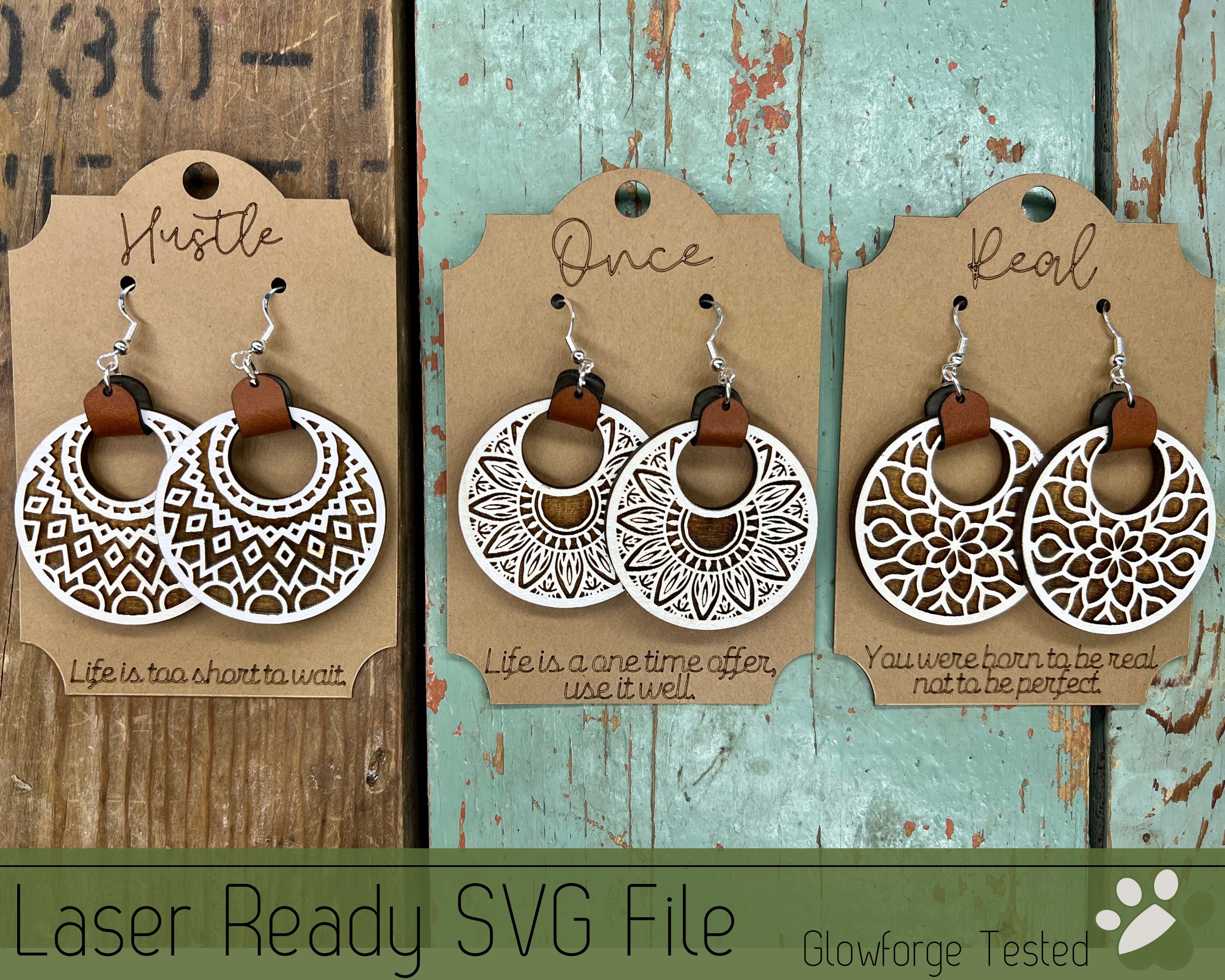 30 Stud Earrings with Earring Cards SVG File for Laser Cutters, Glo...