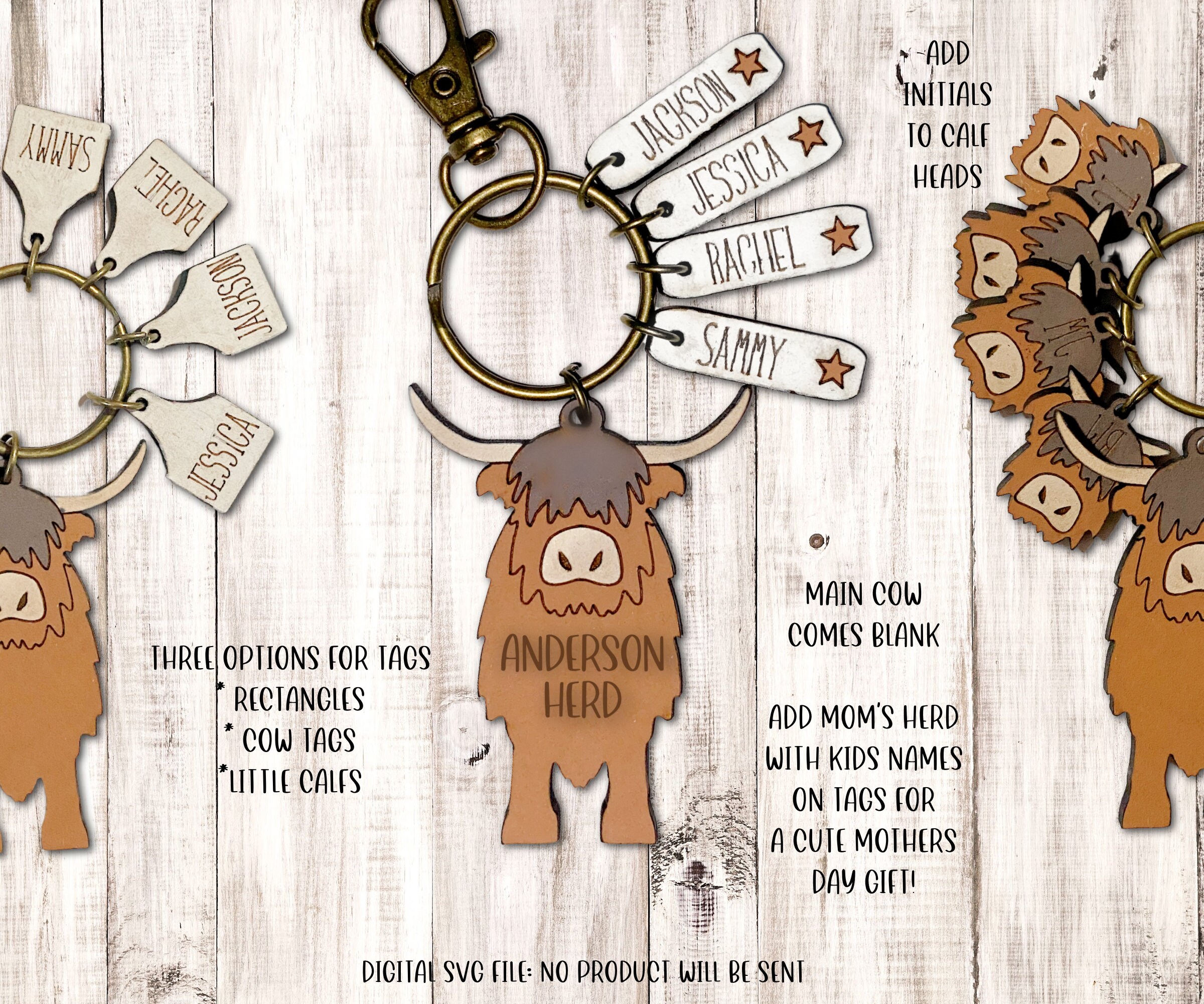 Highland Cow Keychain SVG Cut File, Mother's Day Highland Cow Keych...