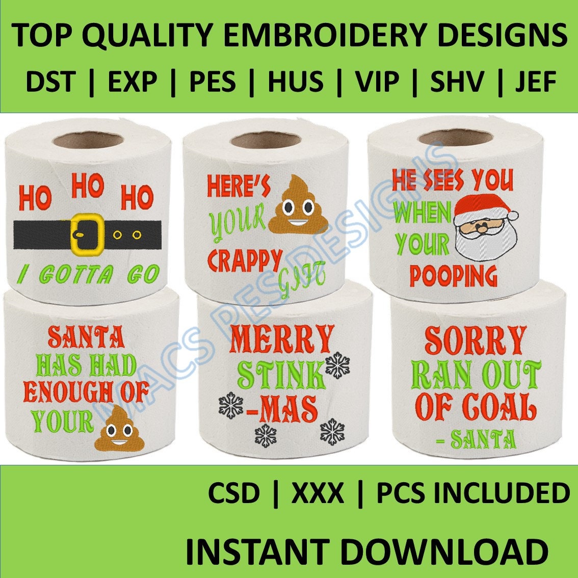 Christmas Toilet Paper embroidery designs, Christmas Embroidery designs for toilet paper, Embroidere...