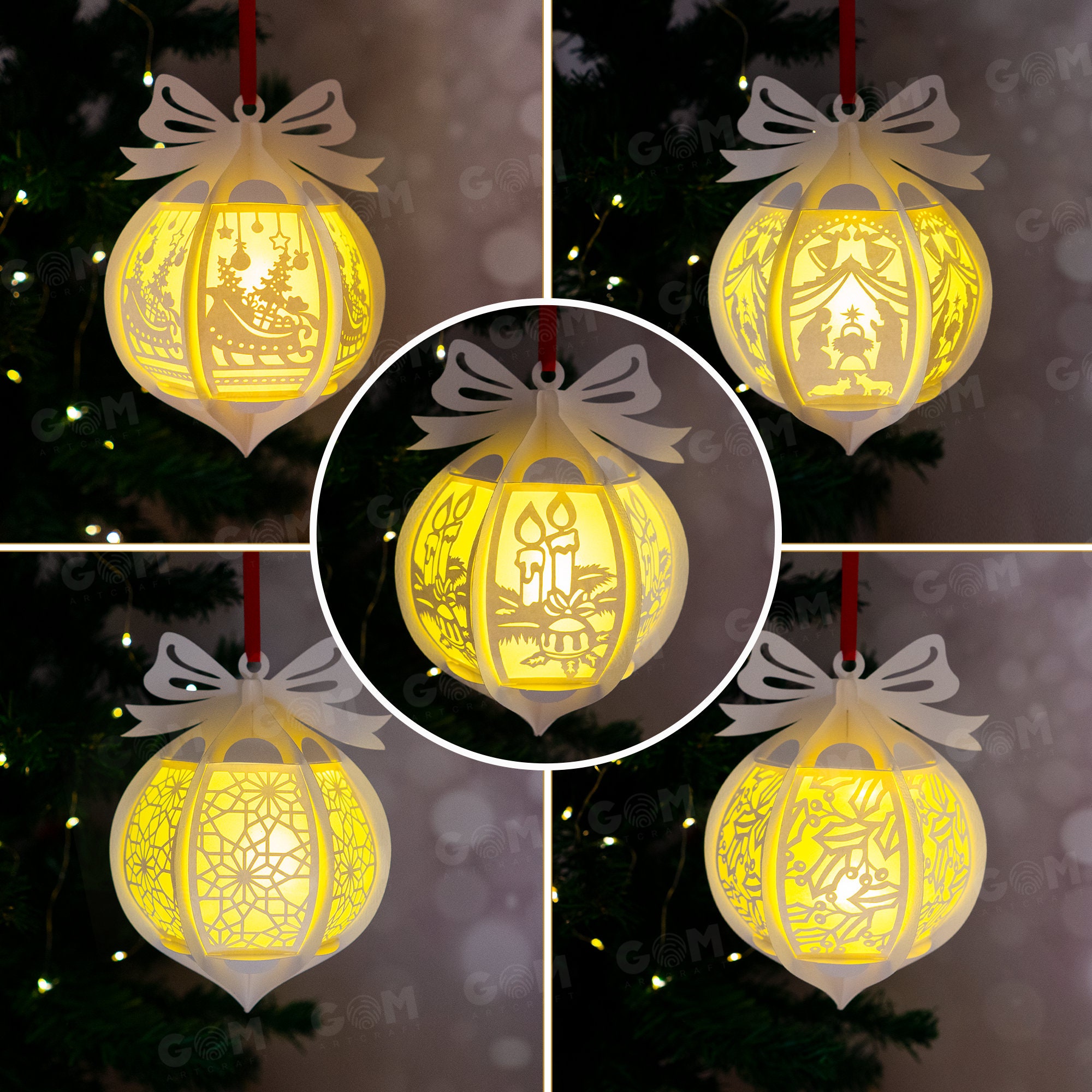 Pack 5 Hanging Arabesque Christmas Ball - Christmas Ball SVG - DIY Lightbox Christmas Ornaments - Pa...
