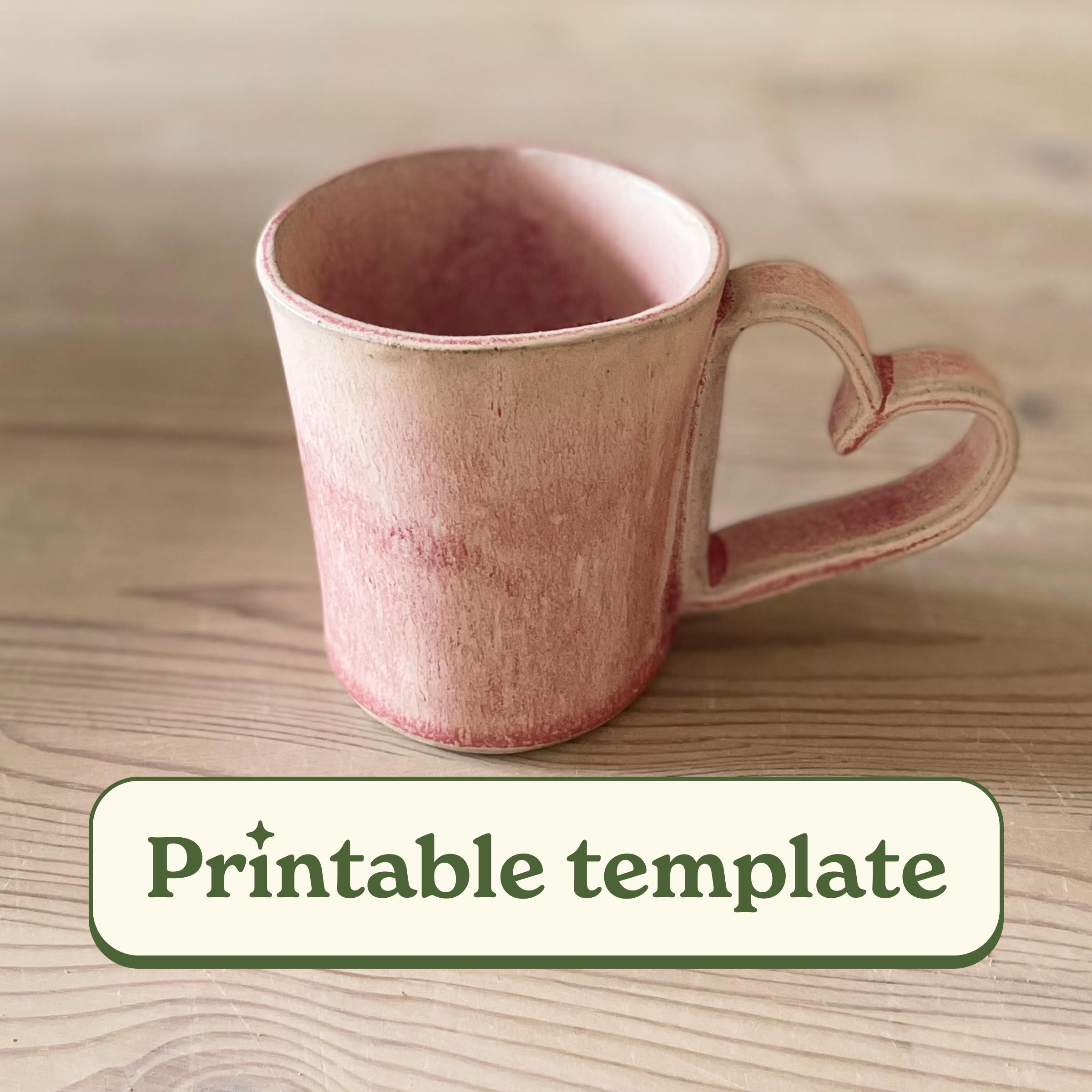 Heart Handle Mug Template, Printable Pottery Mug Pattern, Slab Buil...