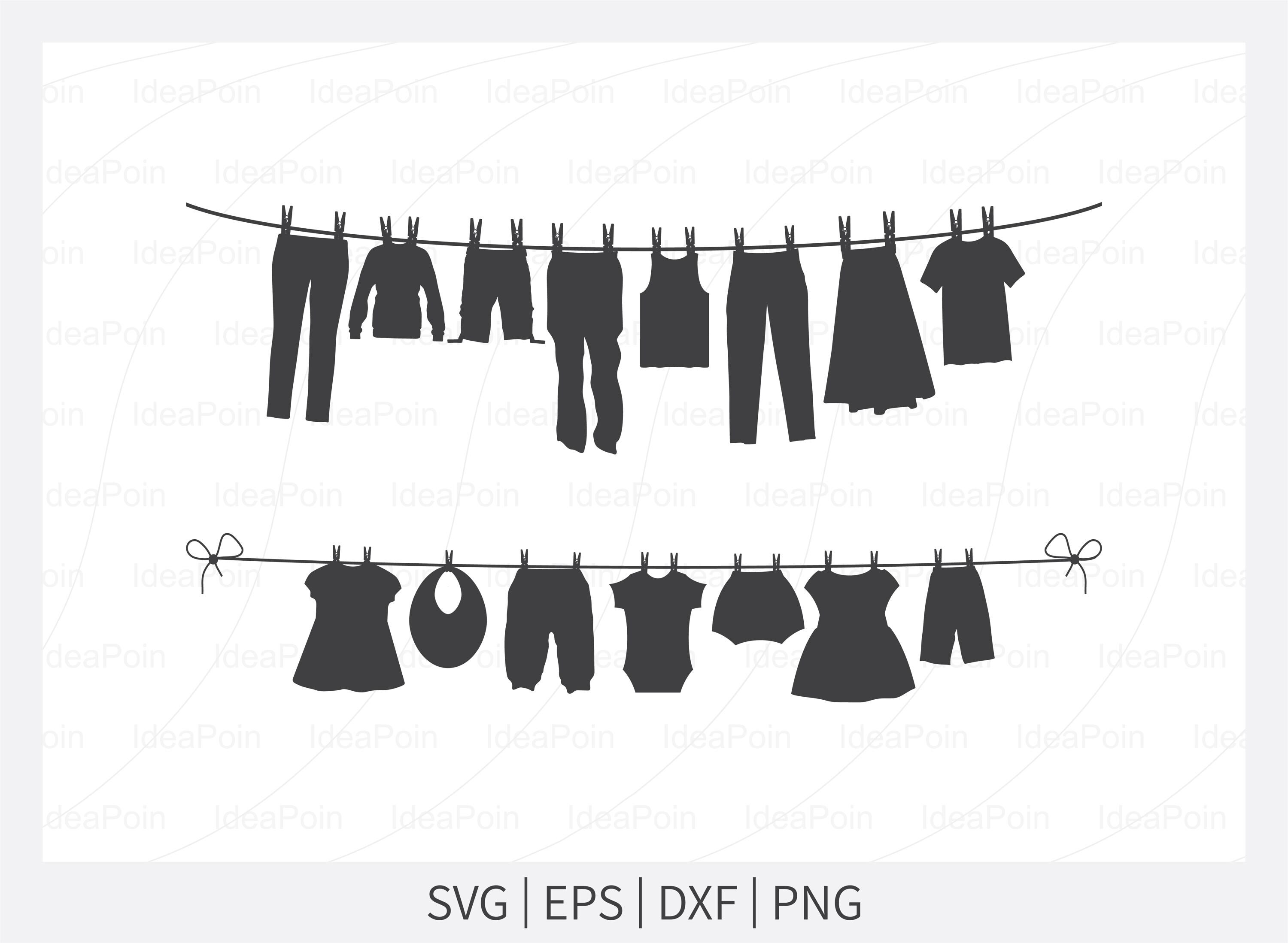 Clothesline silhouette, Clothesline SVG, Line of Clothes SVG, Cloth...