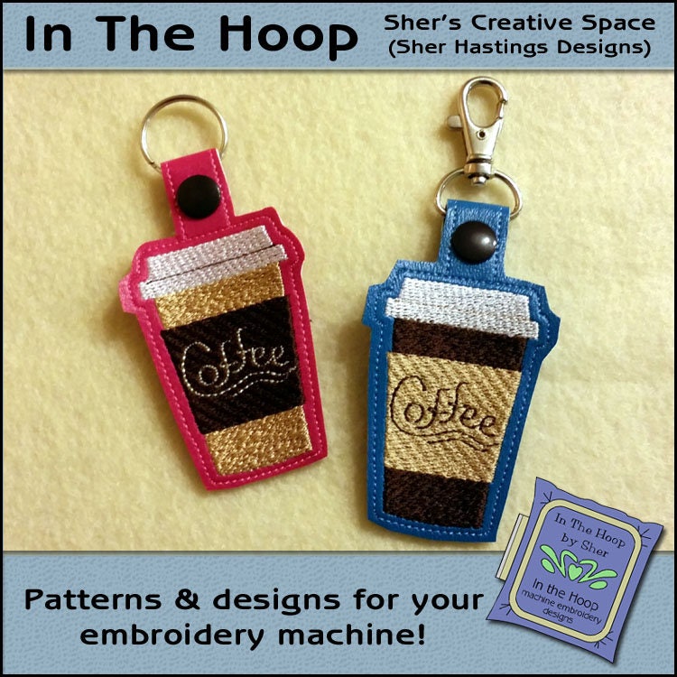 This is an embroidery machine file and instructions to make this Coffee key fob or bag tag with your...