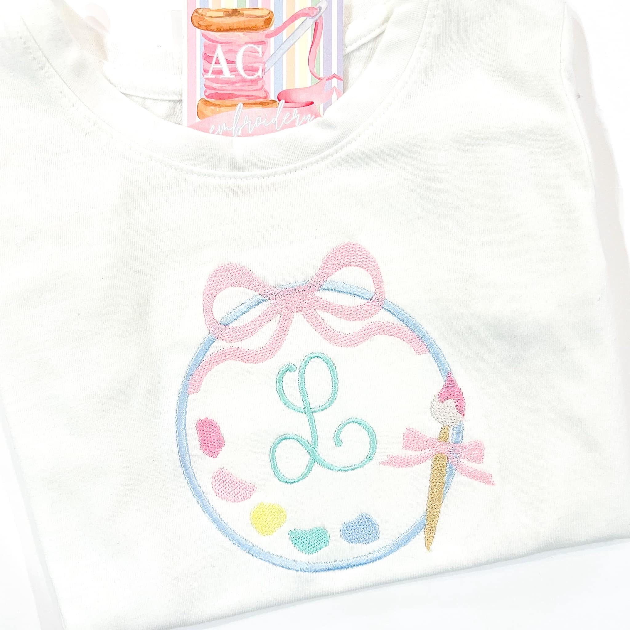 Design includes paintbrush monogram frame with ribbon machine embroidery file. Fonts not included. T...