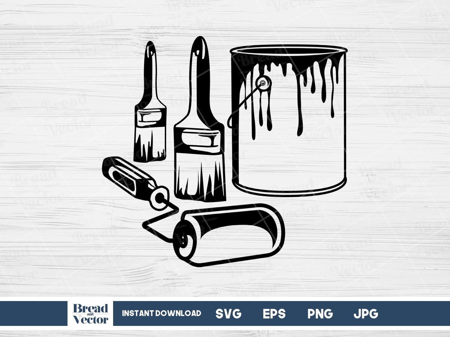 Dripping Paint Bucket Brush And Roller Svg, Dripping Paint And Pain...