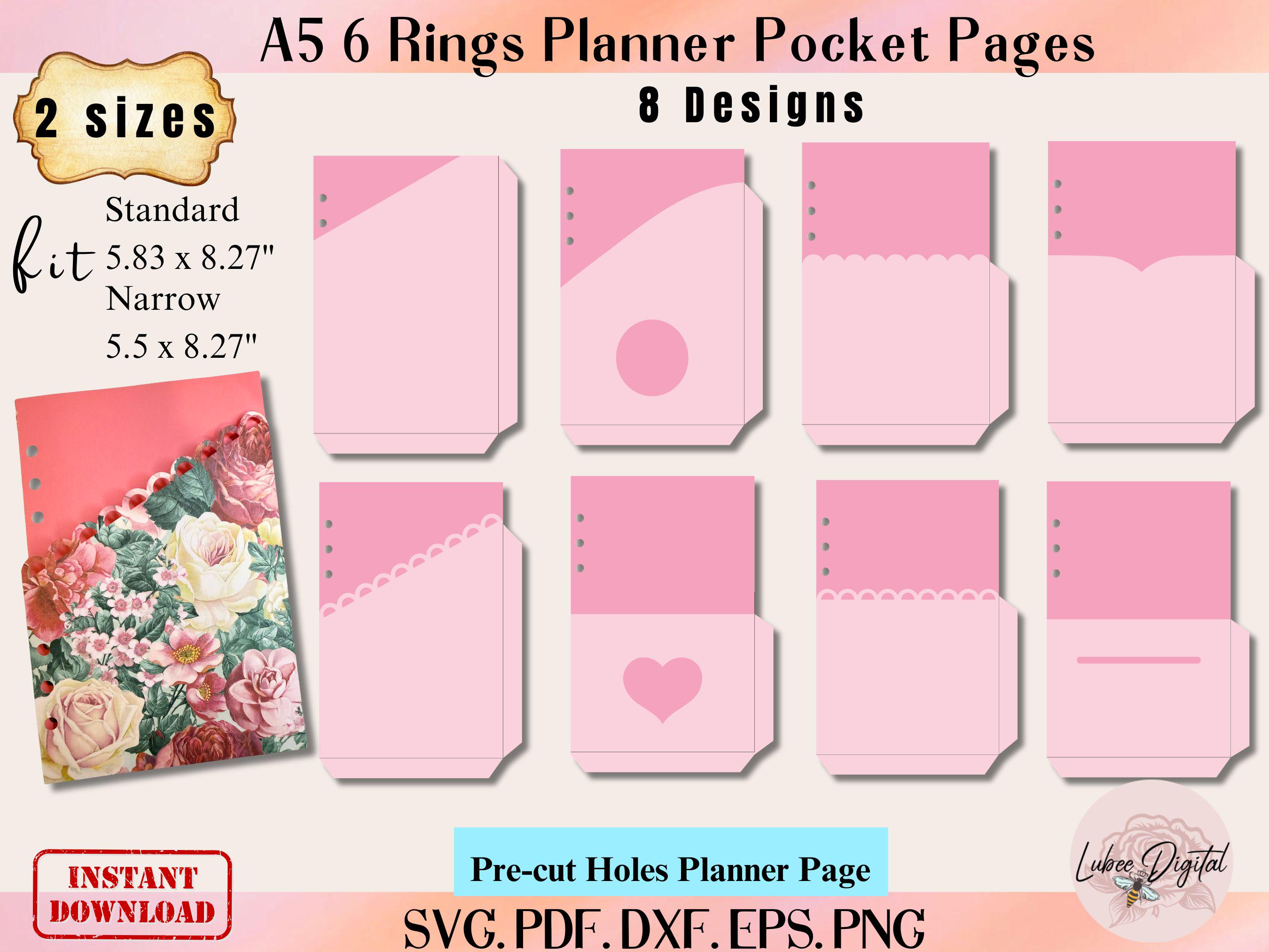 A5 Planner Binder Pocket Template,6-Ring Hole Inserts SVG bundle,A5...