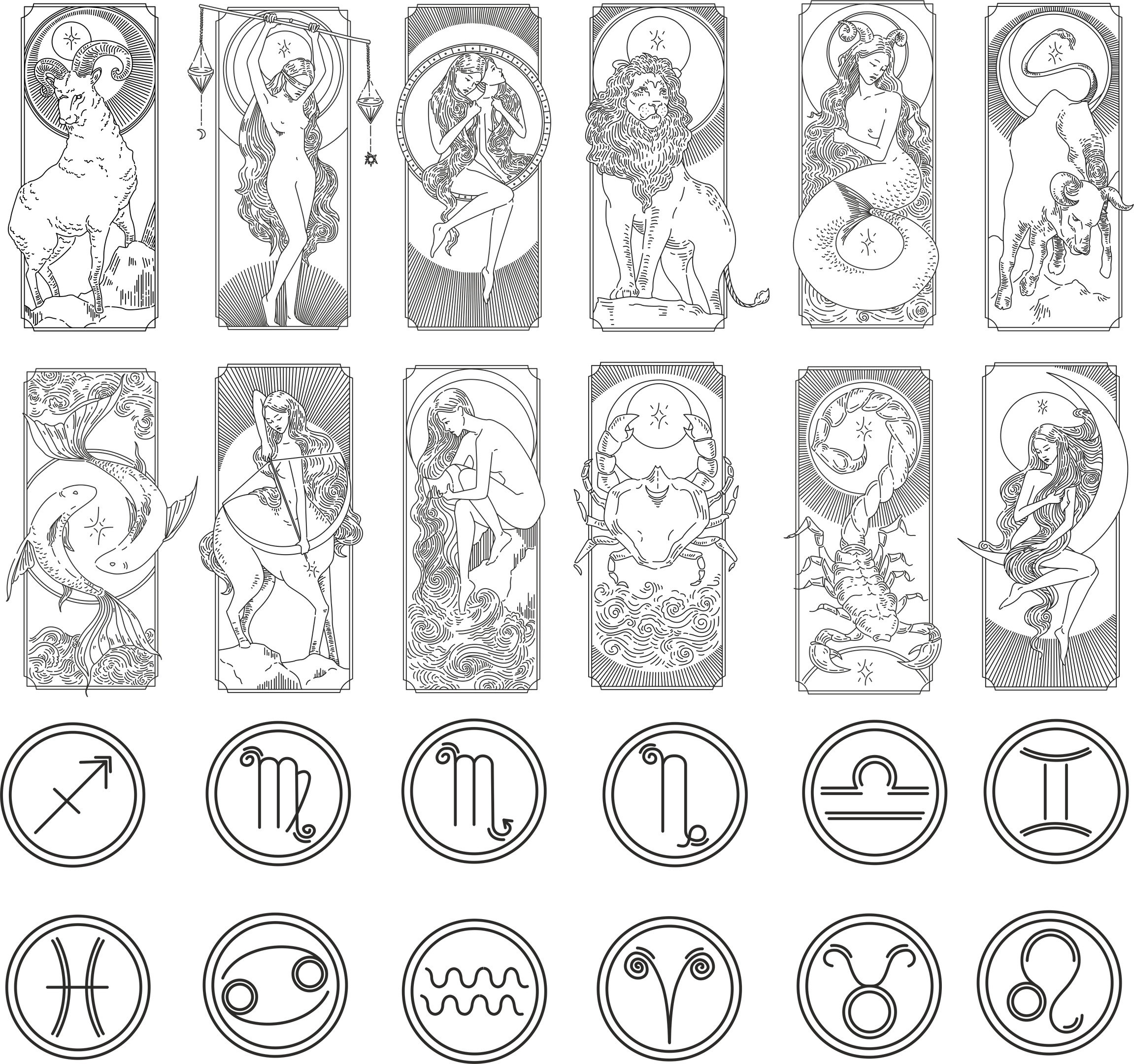 Zodiac Astrology Silhouette Illustration Special Design For Wall De...