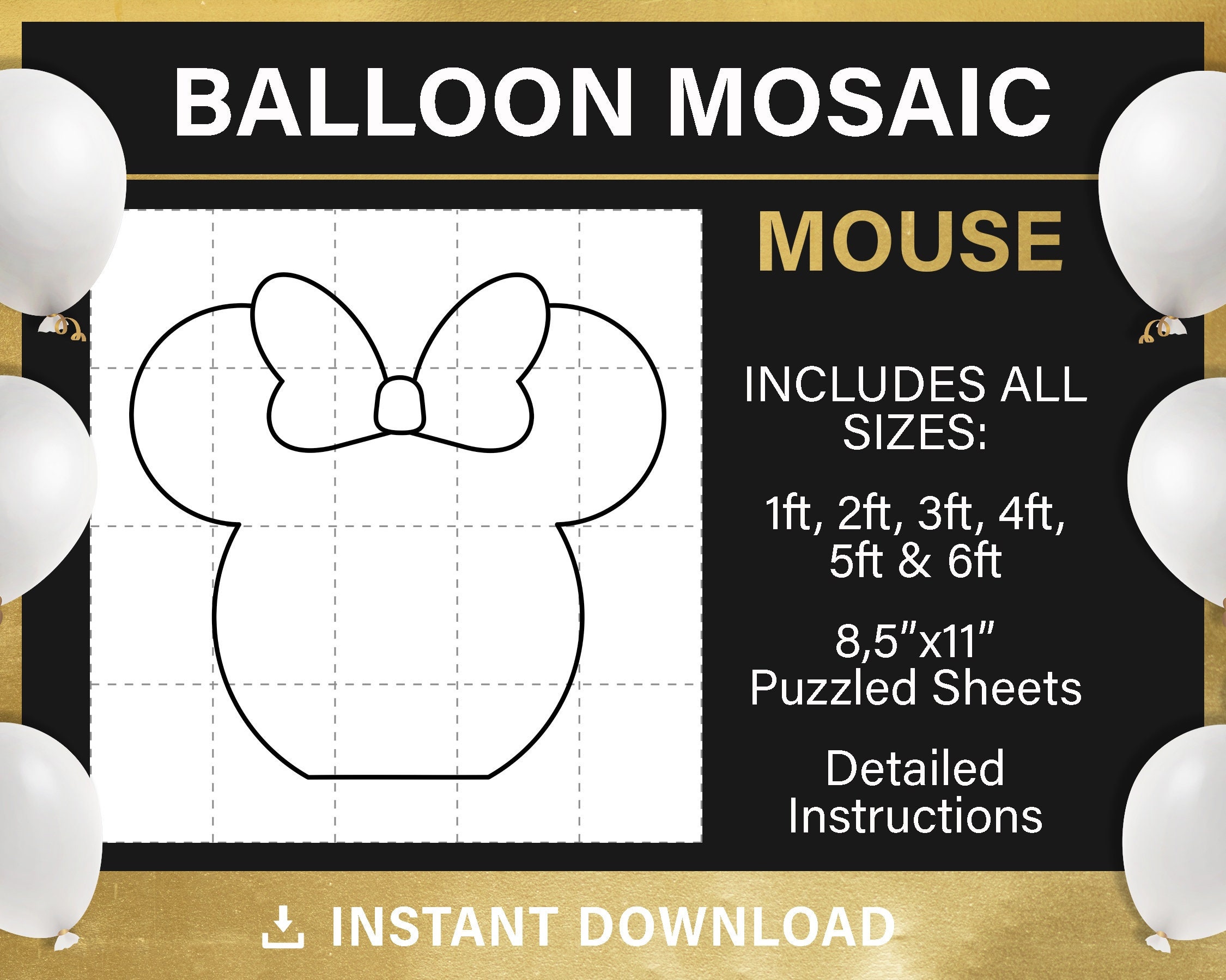 Mosaic tall 'Mouse head 'frame from Balloons You get an INSTANT DOWNLOAD .zip folders including: * 1...
