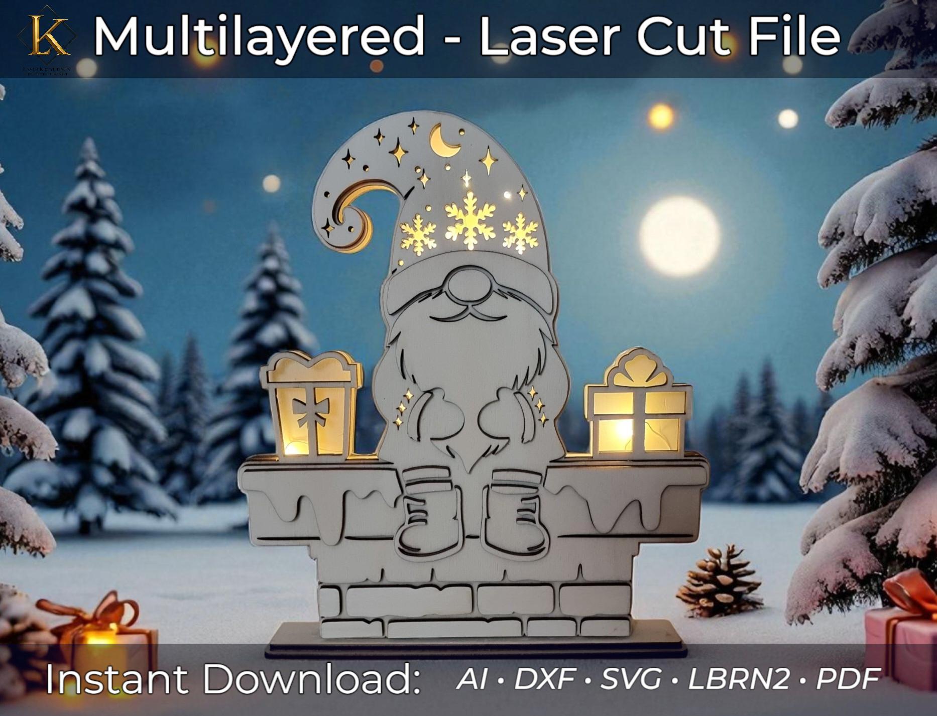 Laser Cut File Christmas Gnome | Decorative Lamp | Multilayered Chr...