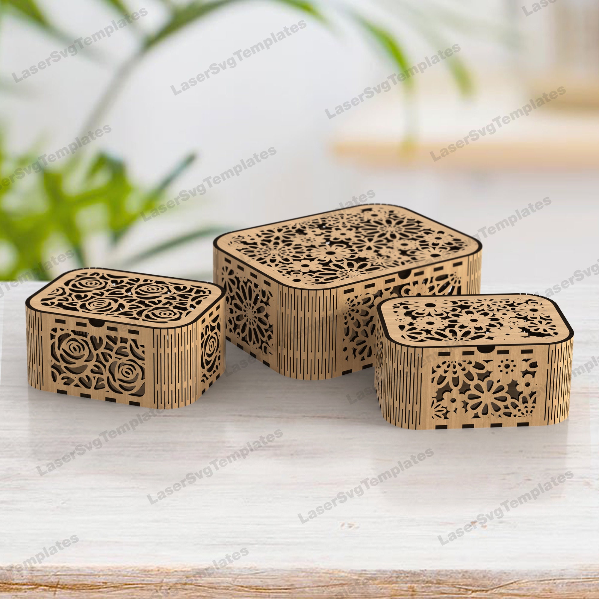 "-- Decorative wooden box bundle laser cut file svg Glowforge floral box svg cricut -- BOX SIZE...