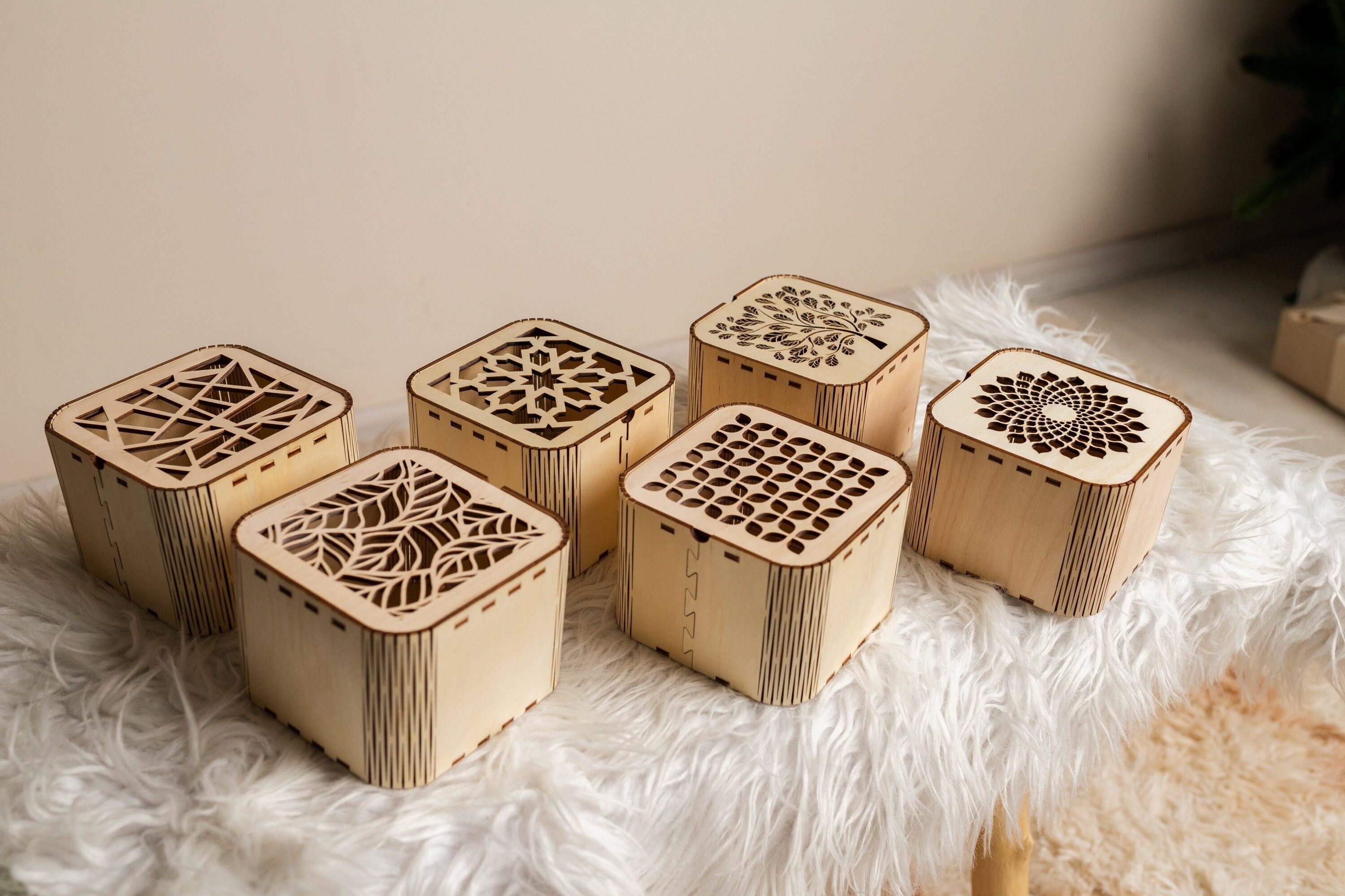 "-- Decorative wooden gift box bundle laser cut file svg -- BOX SIZE: 113 * 113 * 84 mm / 4,4 *...