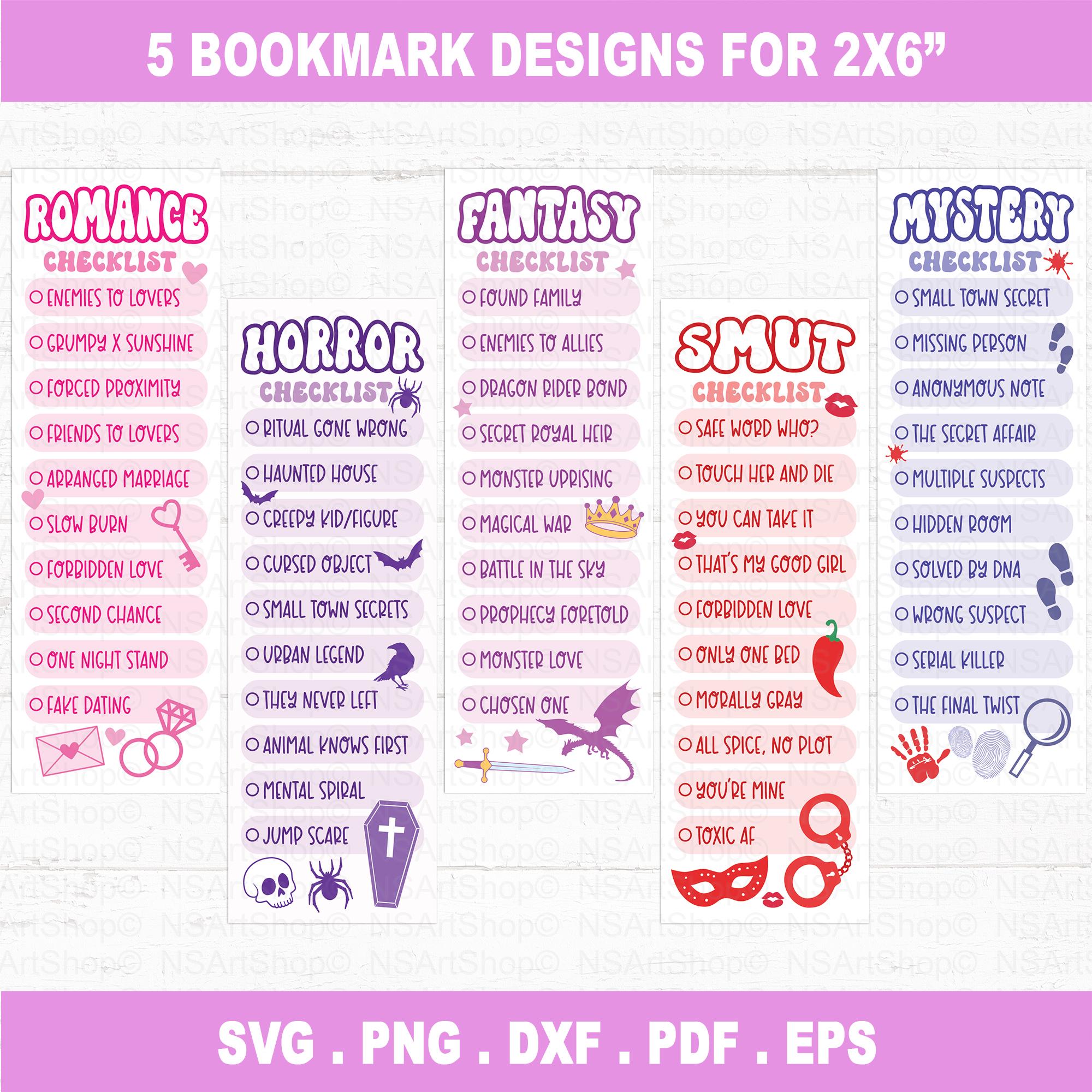 "Book checklist for fantasy romance smutty SVG Files include spicy bookish designs are suitable...