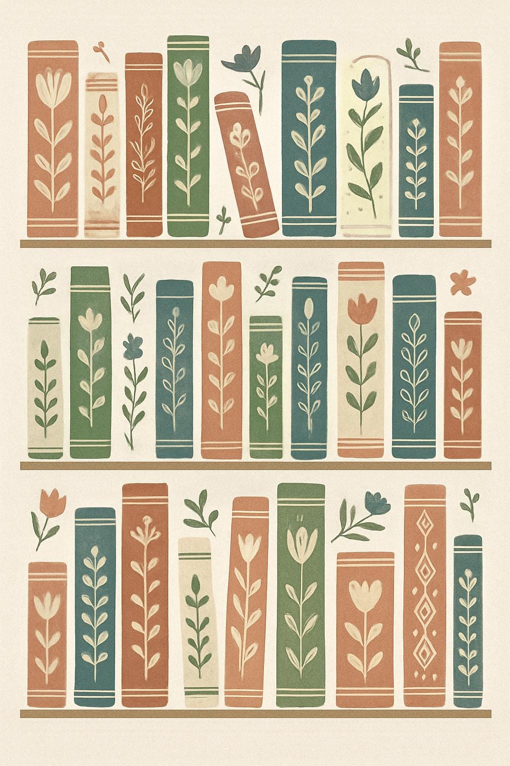 Botanical Bookshelf Art Print, Vintage Floral Book Spine Pattern Wa...