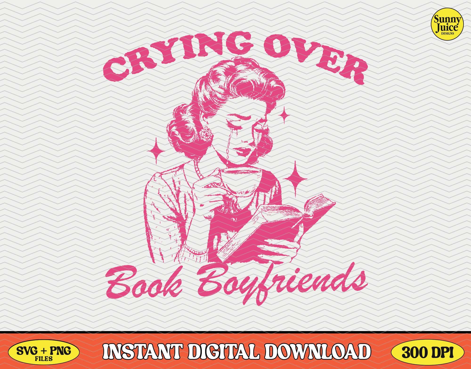Crying Over Book Boyfriends, SVG PNG File, Trendy Vintage Bookish R...