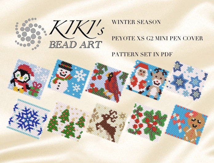Pattern, peyote XS MINI pen cover set, peyote pattern set of 10 for...