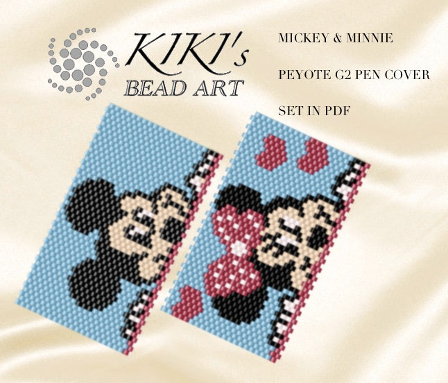 Pattern, peyote pen cover Mickey, Minnie peyote pattern set of 2 fo...