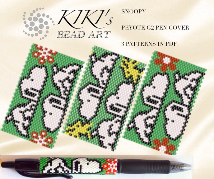 Peyote pen cover patterns- Snoopy, peyote patterns set of 3 for pen...