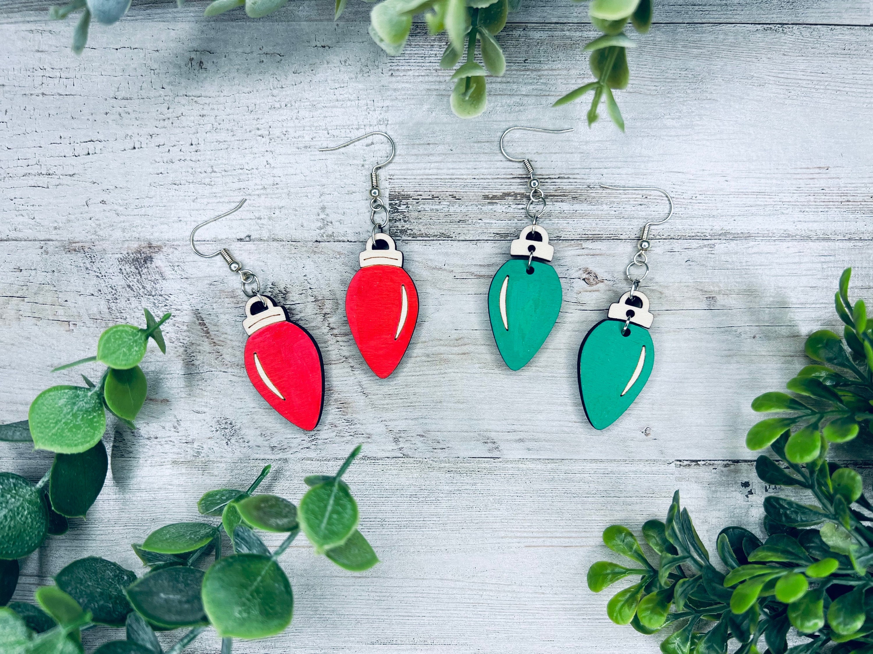 Lightbulb Christmas Earring SVG Bundle File, Glowforge Earring SVG,...