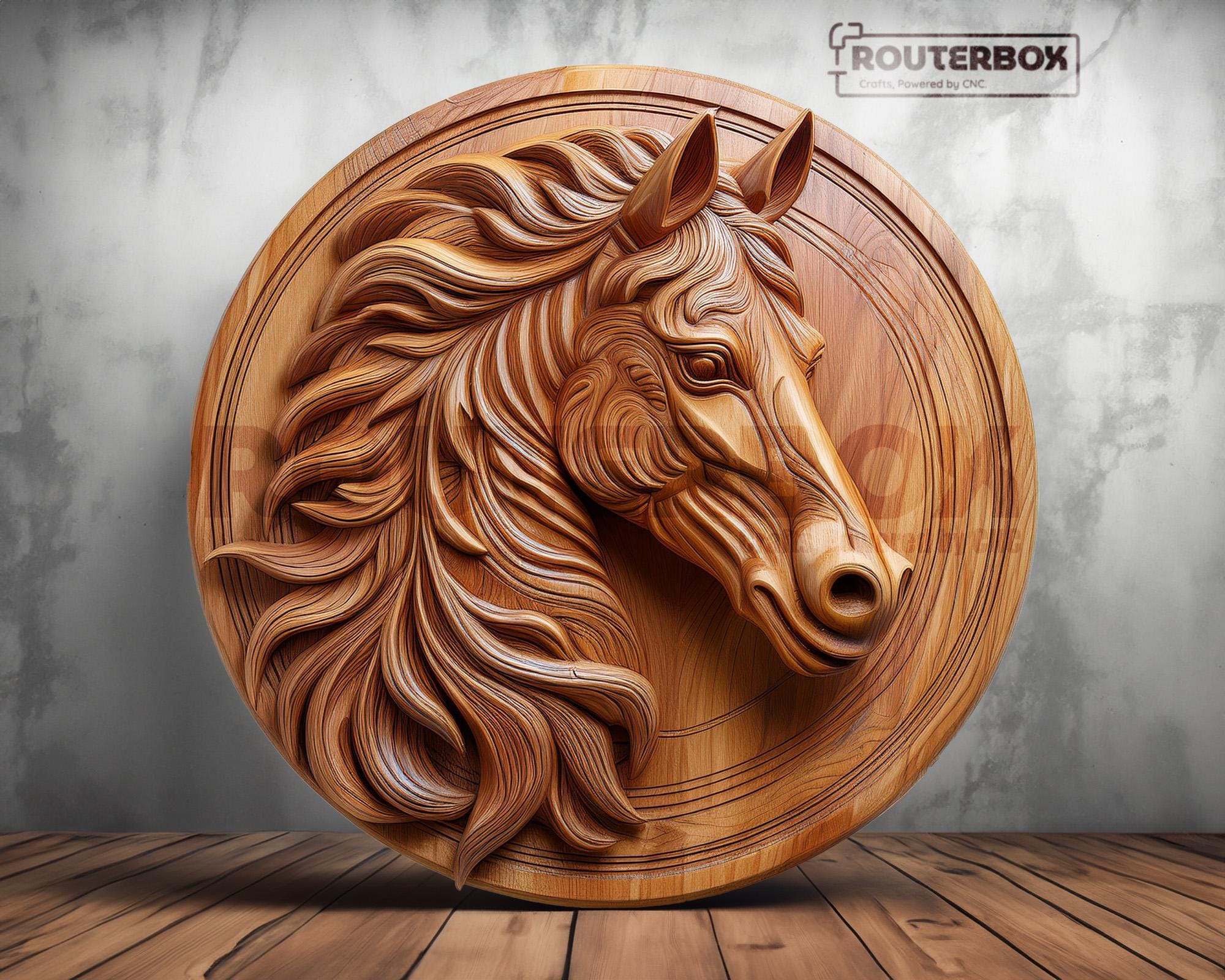 This is a dynamic horse head relief STL model designed with flowing movement and expressive carving ...