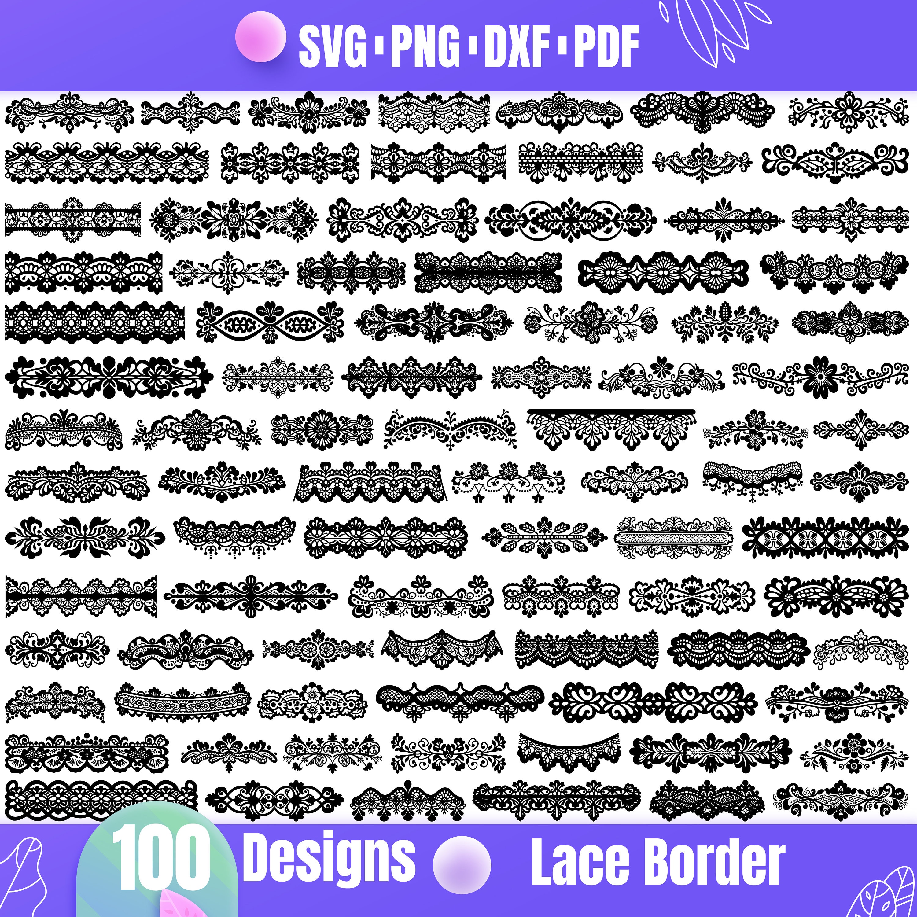 High Quality Lace Border SVG Bundle, Lace Border dxf, Lace Border p...