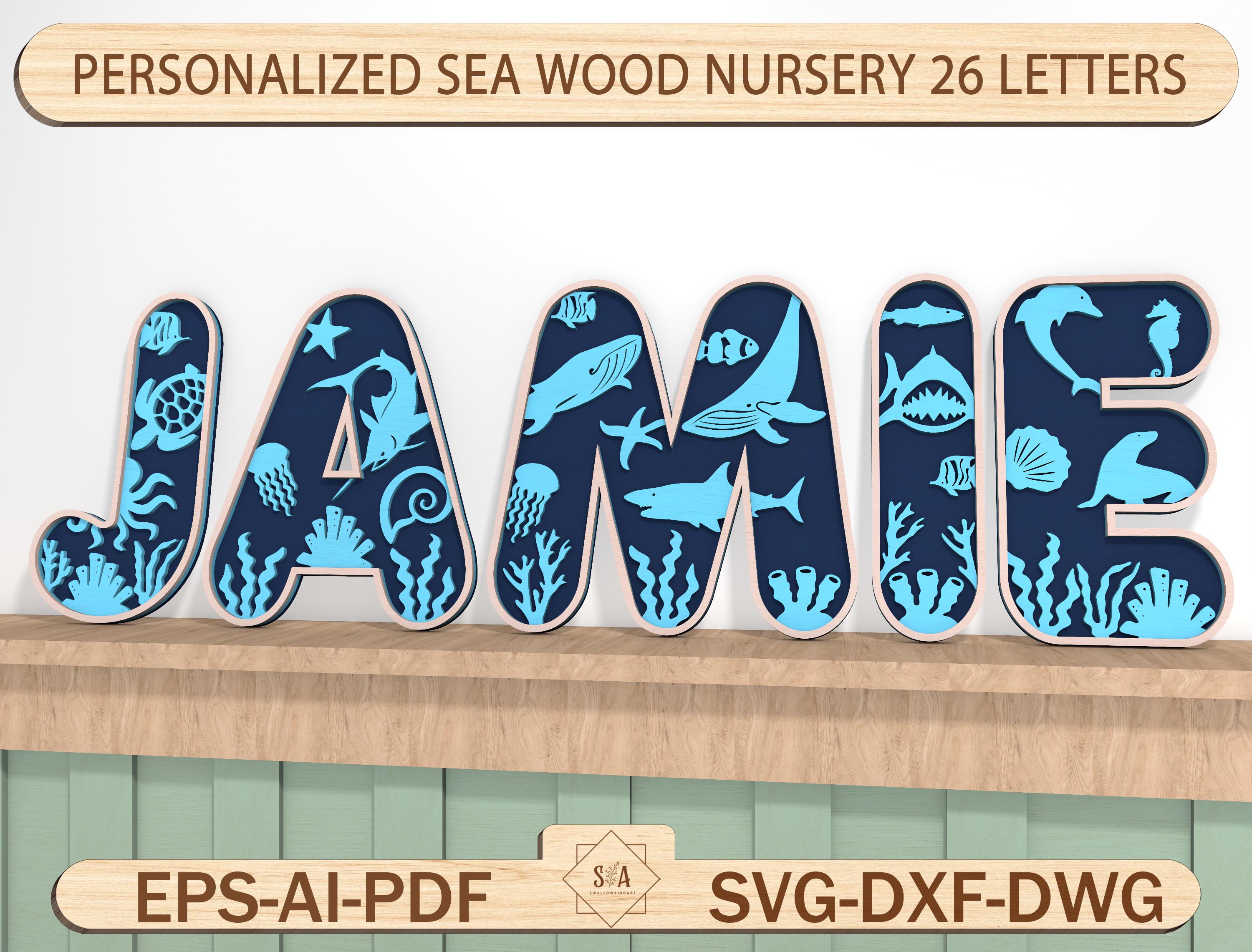 Personalized Sea Wood Nursery 26 Letters, Wooden Alphabet Letters, ...