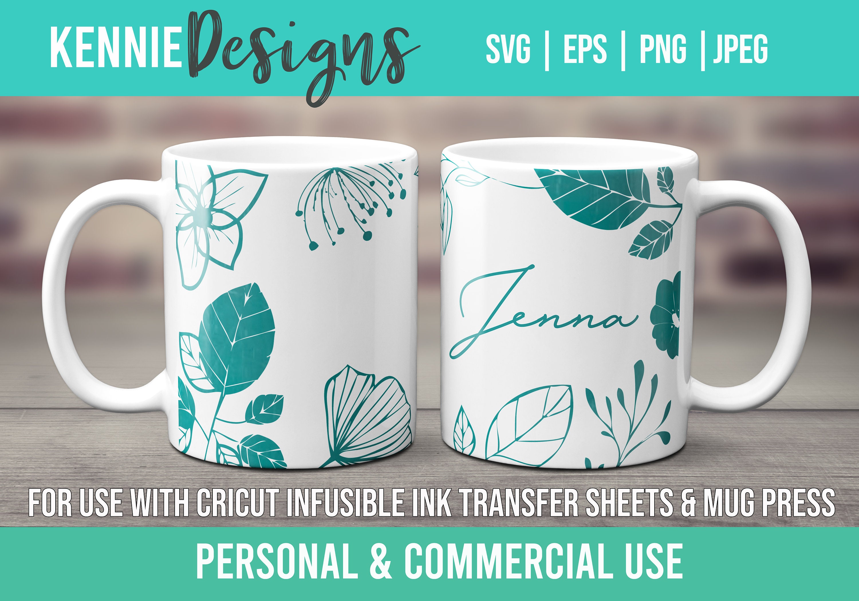 Floral Elements Mug template SVG for Infusible Ink Sheets for use C...