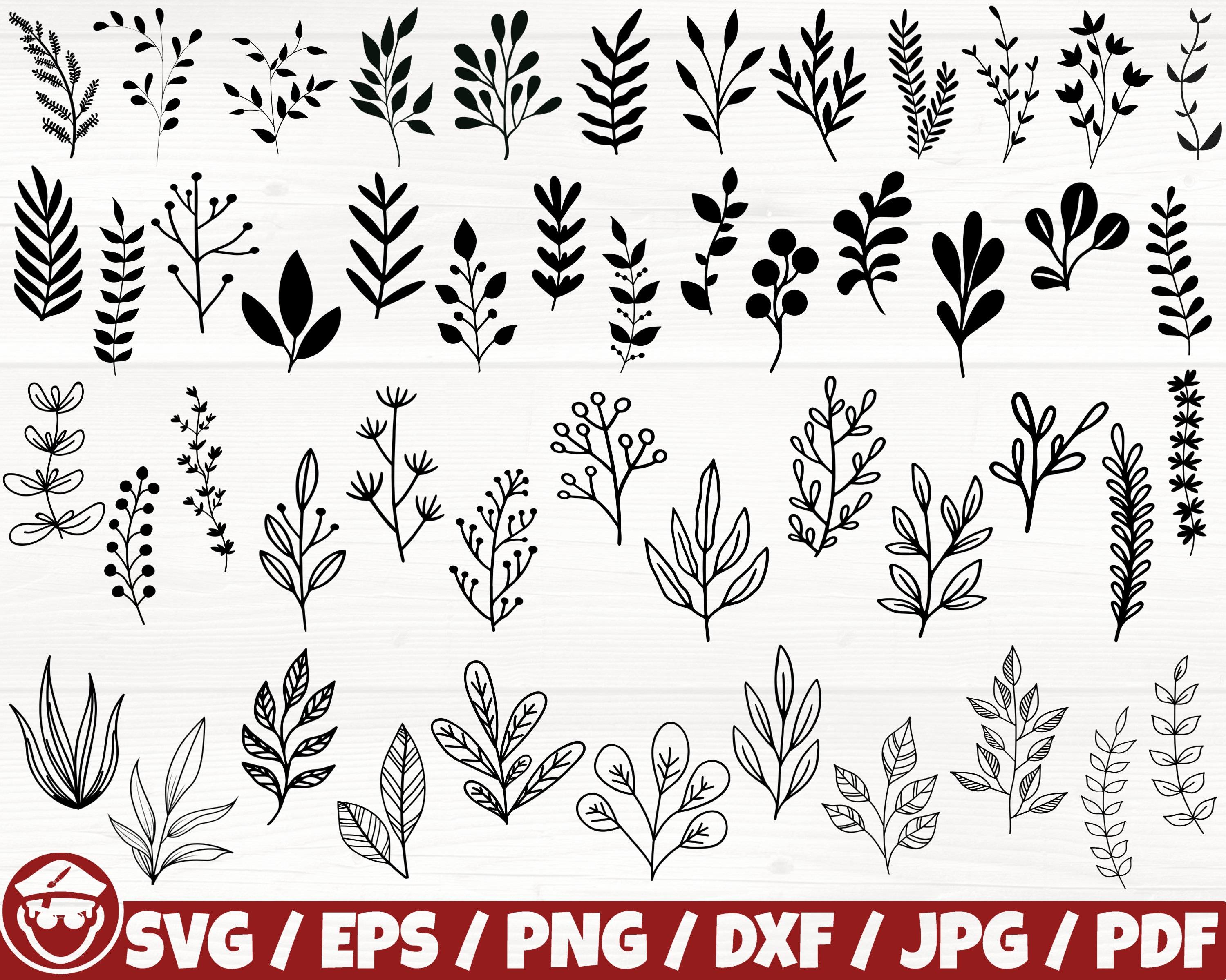 Leaves x50 BUNDLE Svg/Eps/Png/Dxf/Jpg/Pdf, Hand Drawn Leaves Svg, L...