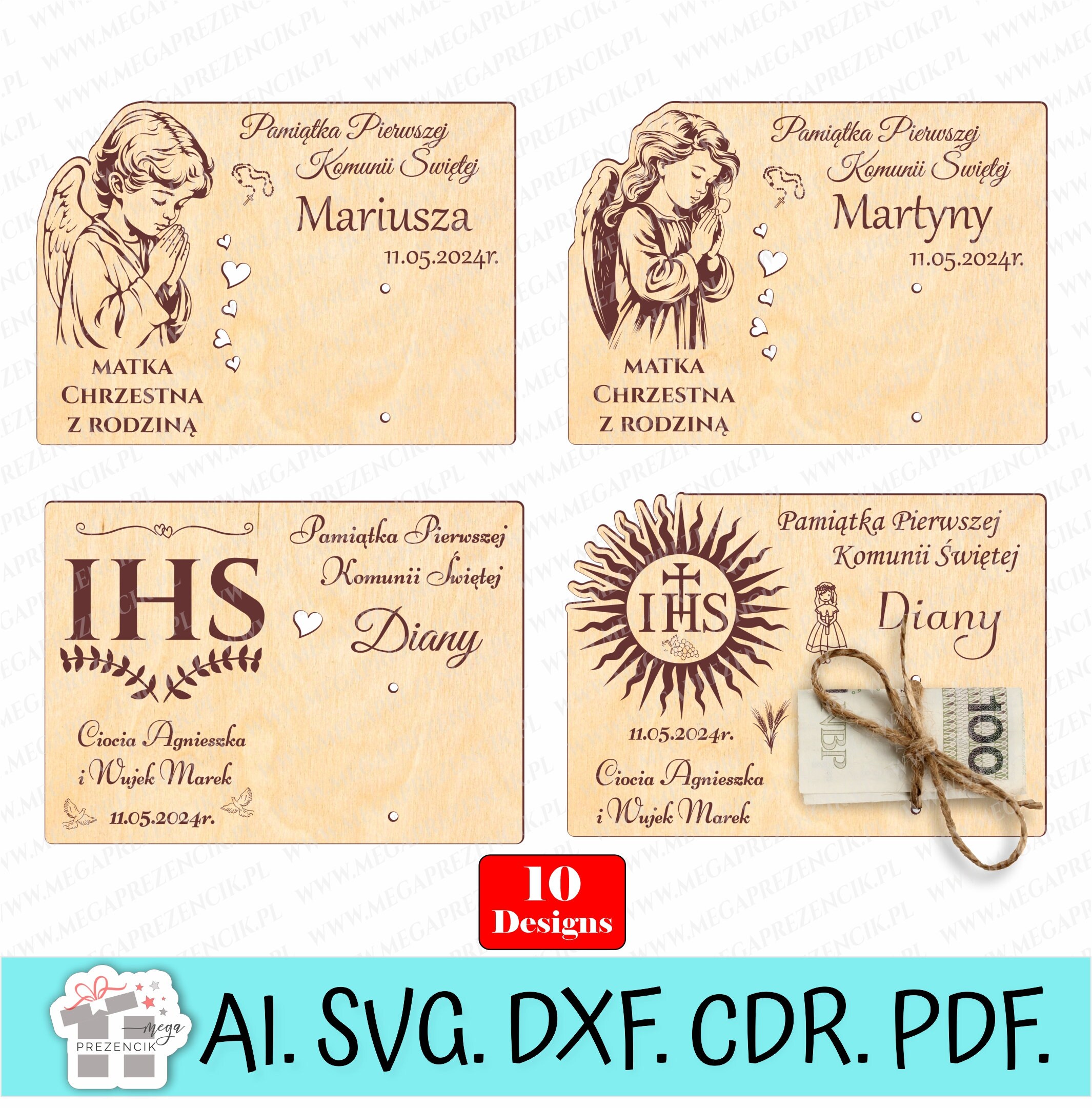 Set contains: - 10 patterns of money cards as a souvenir of the First Holy Communion - designs saved...