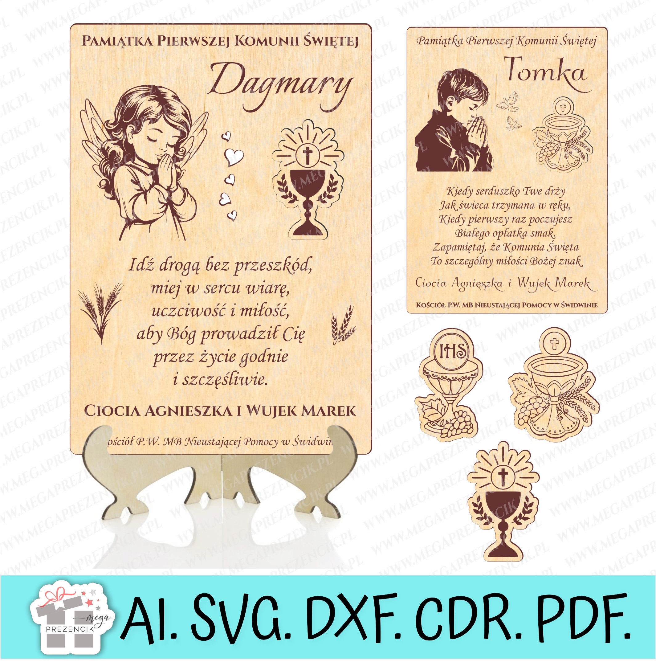 Set contains: - 6 patterns of First Holy Communion souvenirs for girls and boys - slide-in souvenir ...