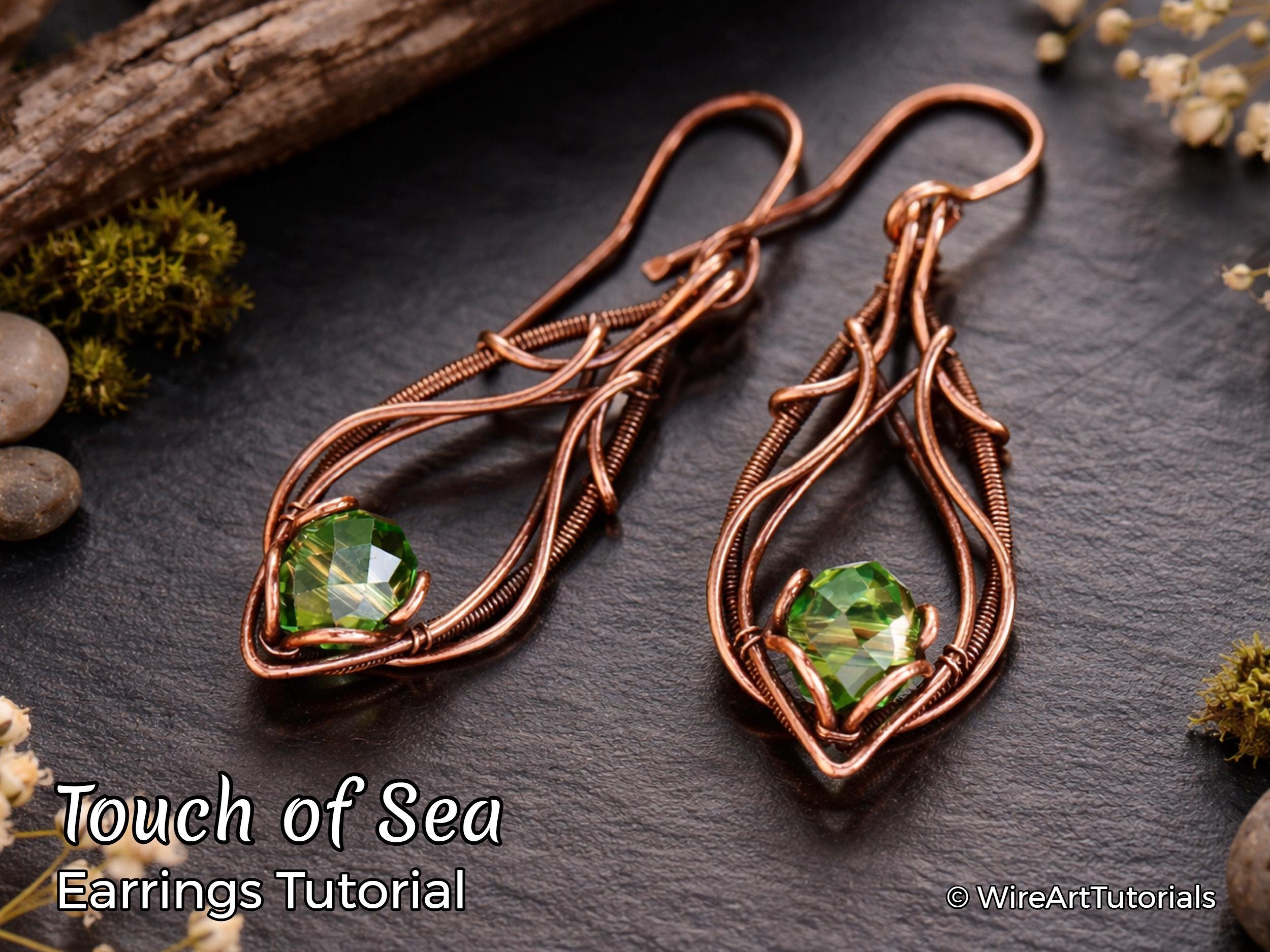 TUTORIAL Touch of Sea Earrings wire wrapped jewelry making PDF patt...