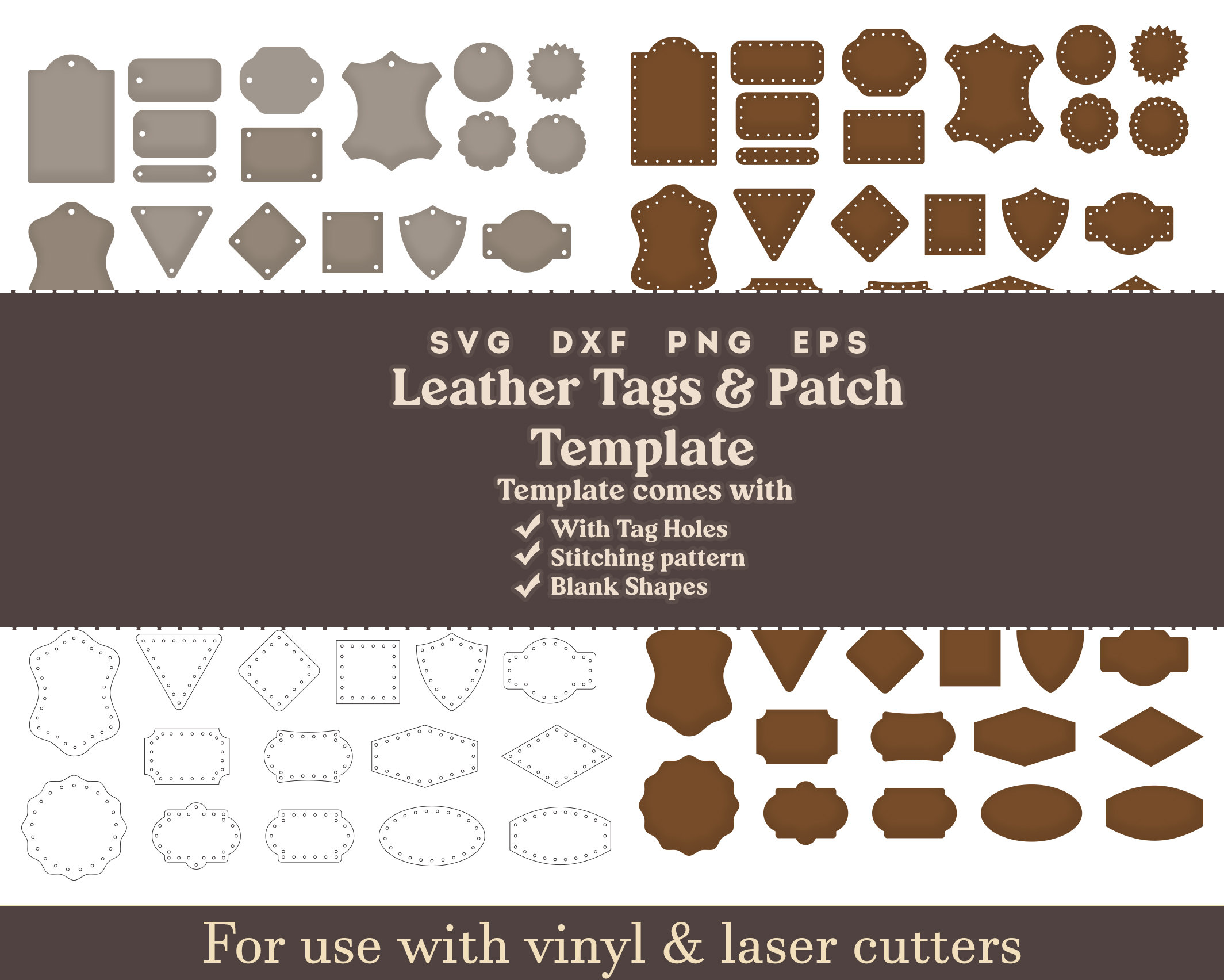 SVG - DXF - EPS - SVG (Template includes with and without Tagging Holes) You will receive a ZIP file...