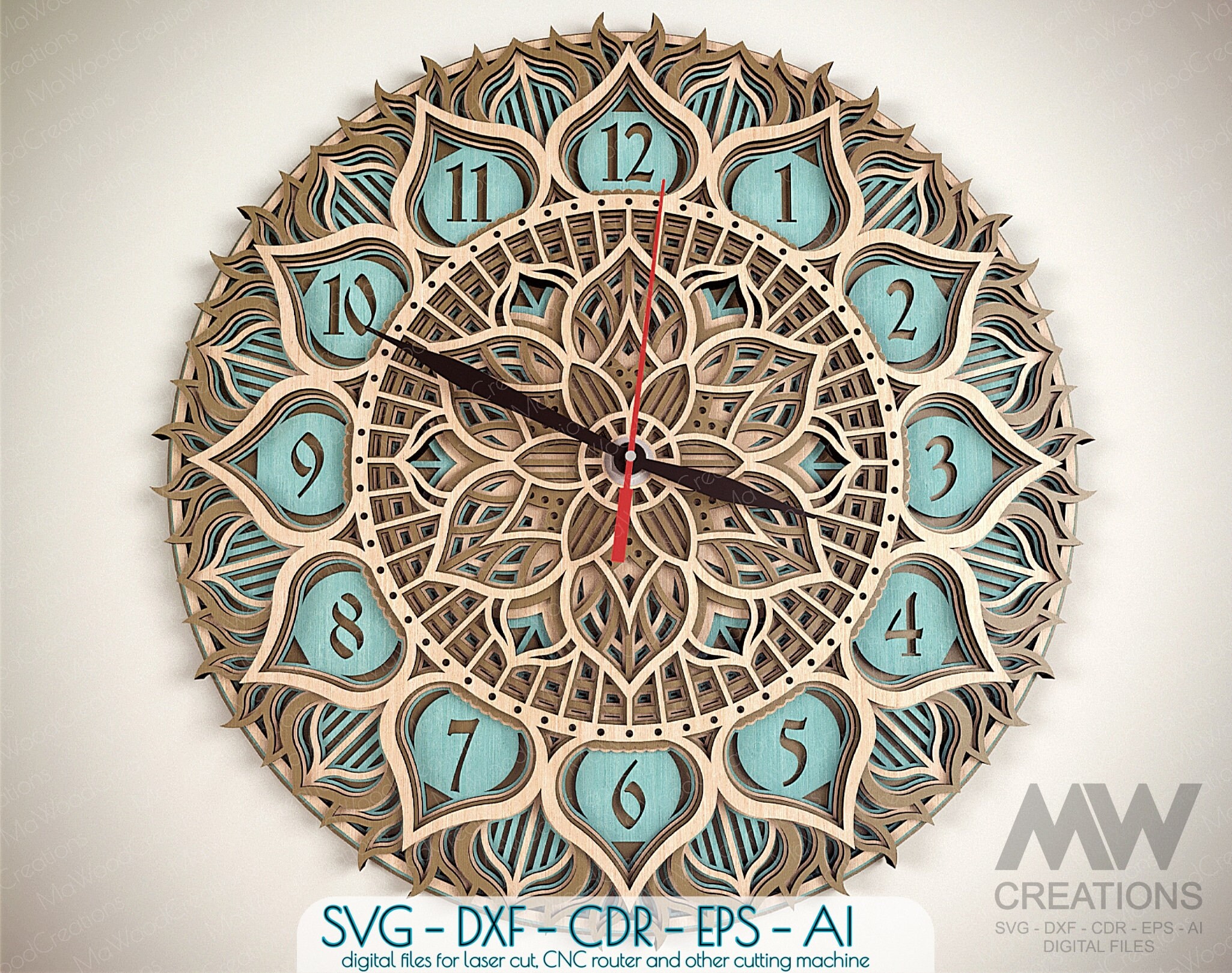 The multilayer mandala clock files are specially prepared for the laser cut, CNC router and other cu...