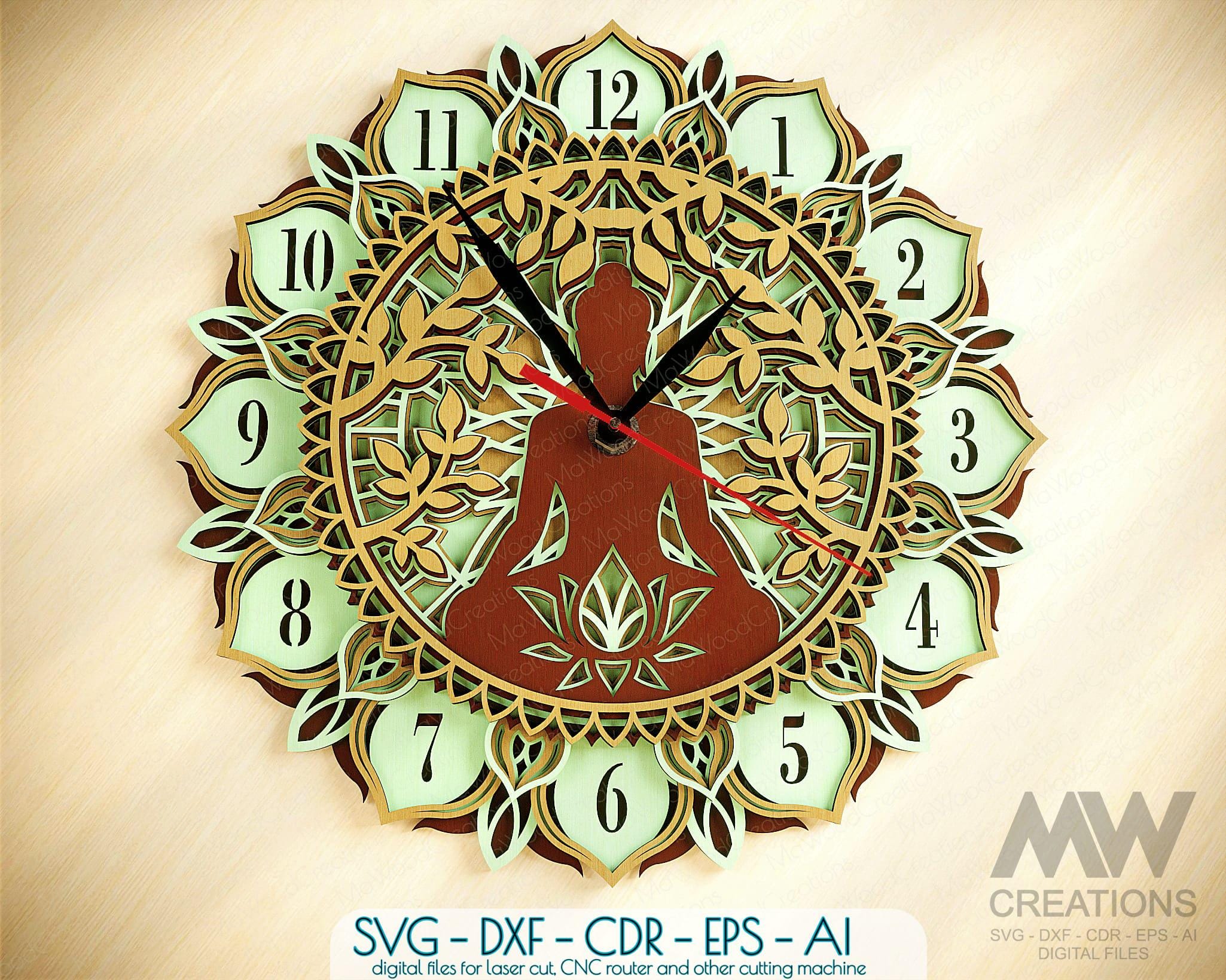 Multi Layer Clock Svg, Mandala Yoga Clock SVG Dxf, Laser cut Clock,...