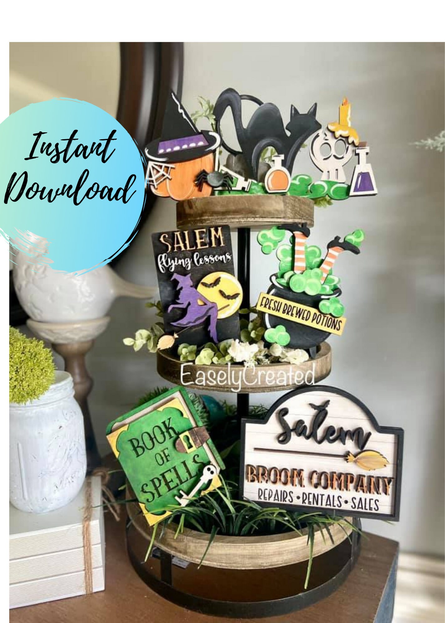 Witch Tiered Tray Digital Download File - Pumpkin Tiered Tray - Hal...