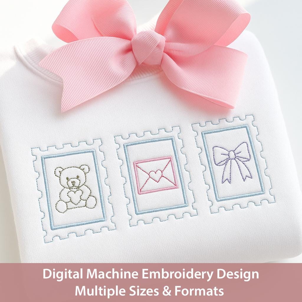 Vintage Stamp Mini Embroidery Design Set | Teddy Bear, Bow, Love Le...