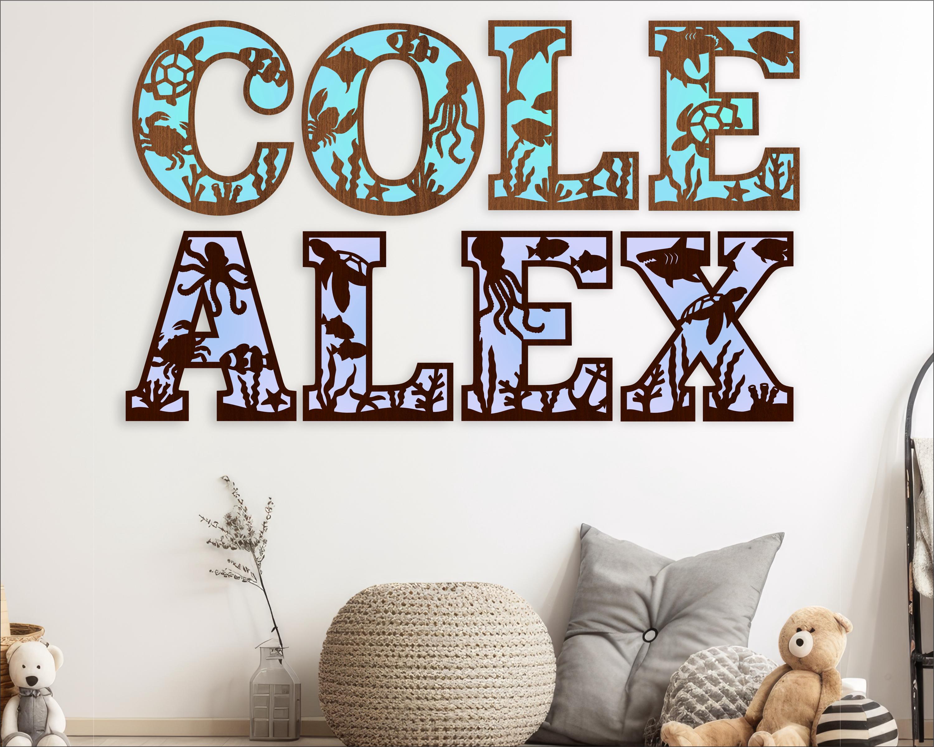 Sealife ocean alphabet letter set. 2 layer letters 51 letters SVG f...