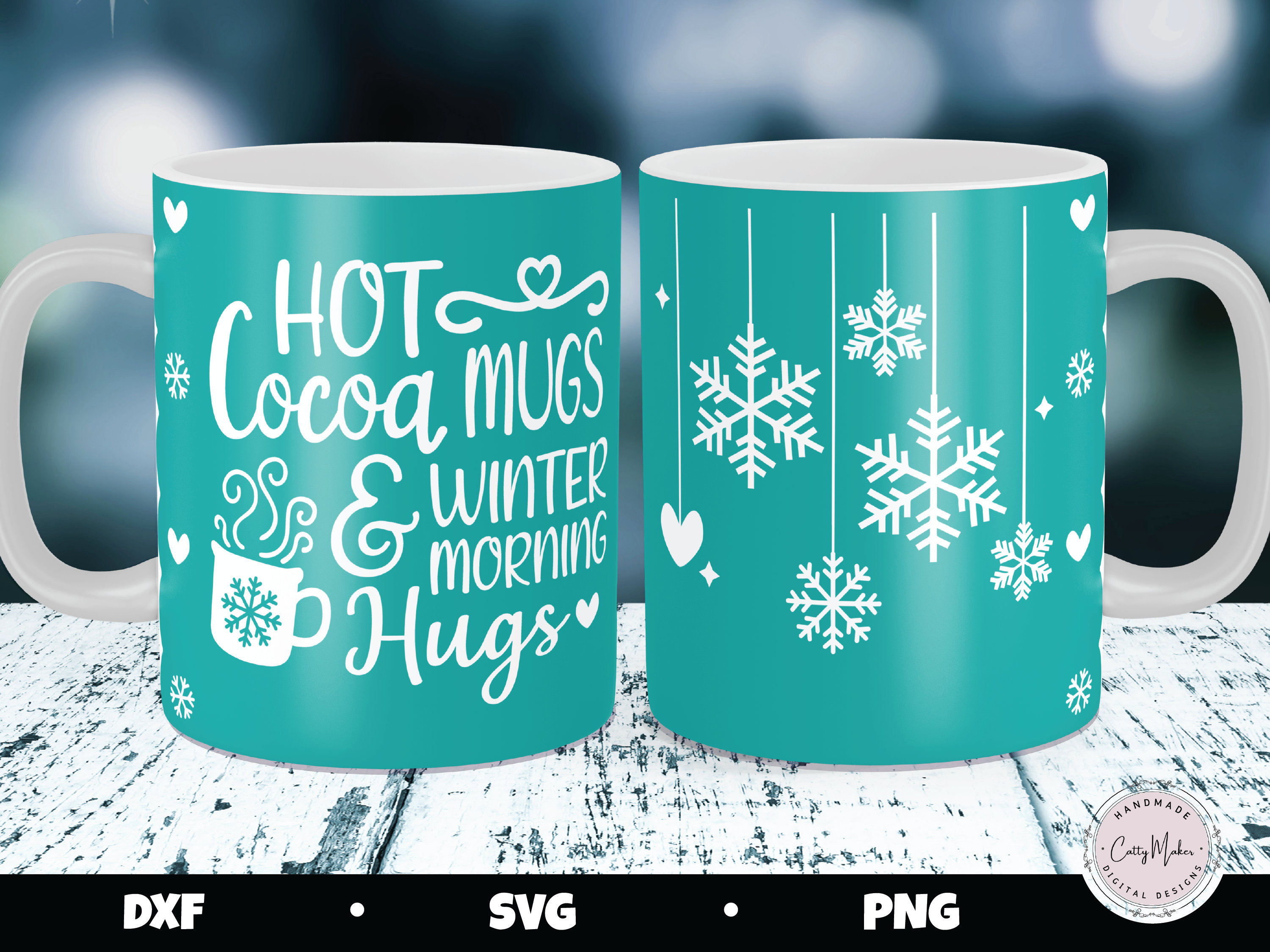"\"Hot Cocoa Mugs & Winter Morning Hugs\" Christmas Mug Press SVG Cut File for In...