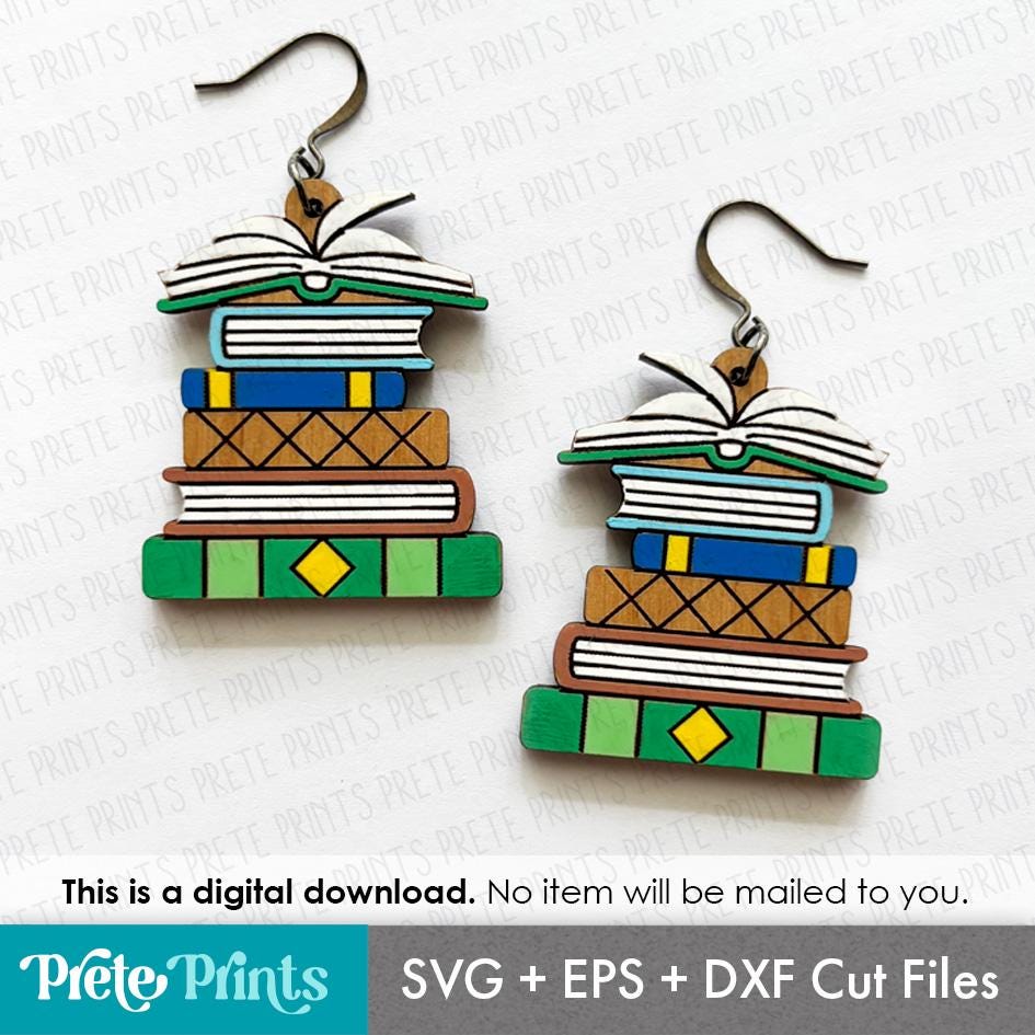 Book Stack Earrings SVG - Digital Download, Laser Cut Earring Files...