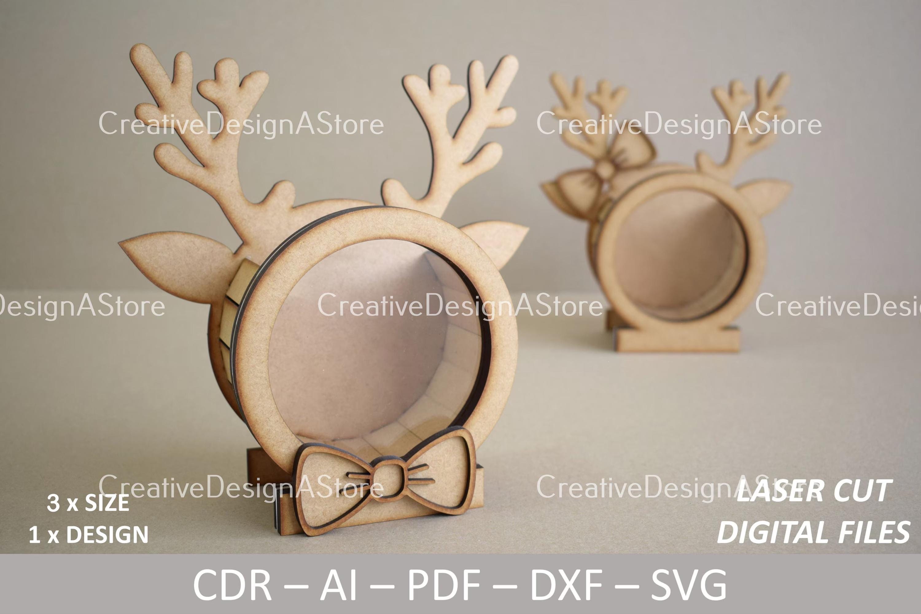 Reindeer Gift Box Laser Cut File Template SVG File DXF with Ribbon ...