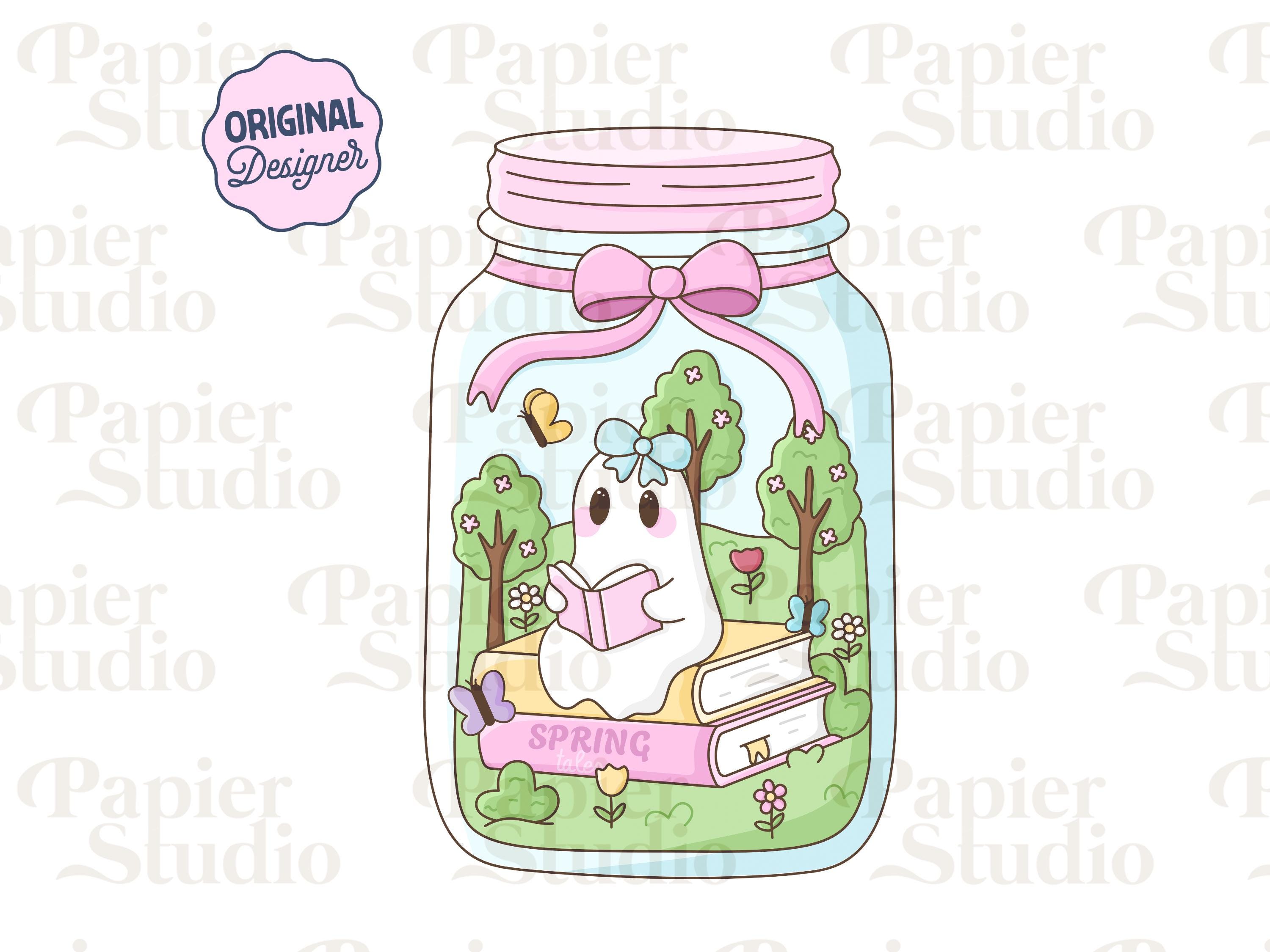 Spring Bookish Jar PNG & SVG, Cozy Floral Reading Art for Book lovers, Stickers, Magnetic Bookma...