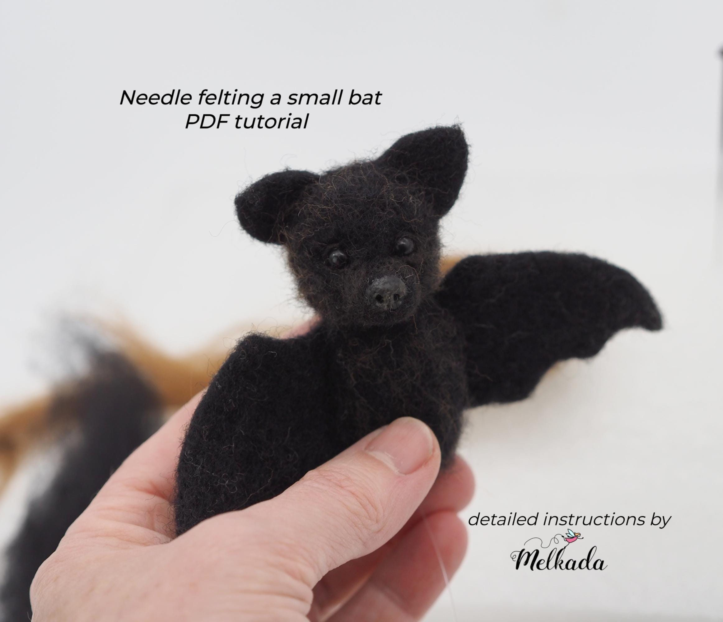 This is an instant digital download PDF file in English of a needle felting tutorial of a baby bat f...