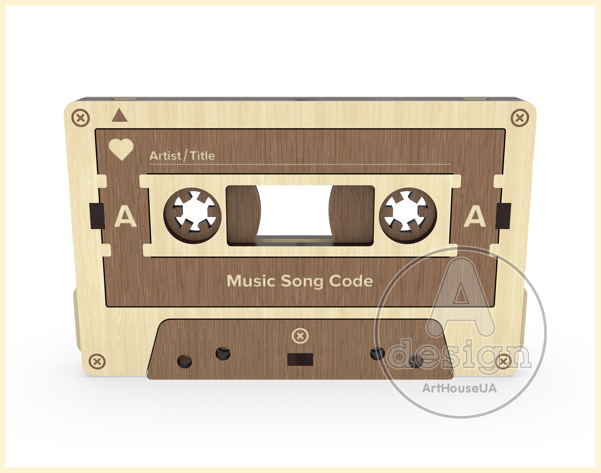 Modern wooden cassette for favorite song code, Vintage cassette tap...