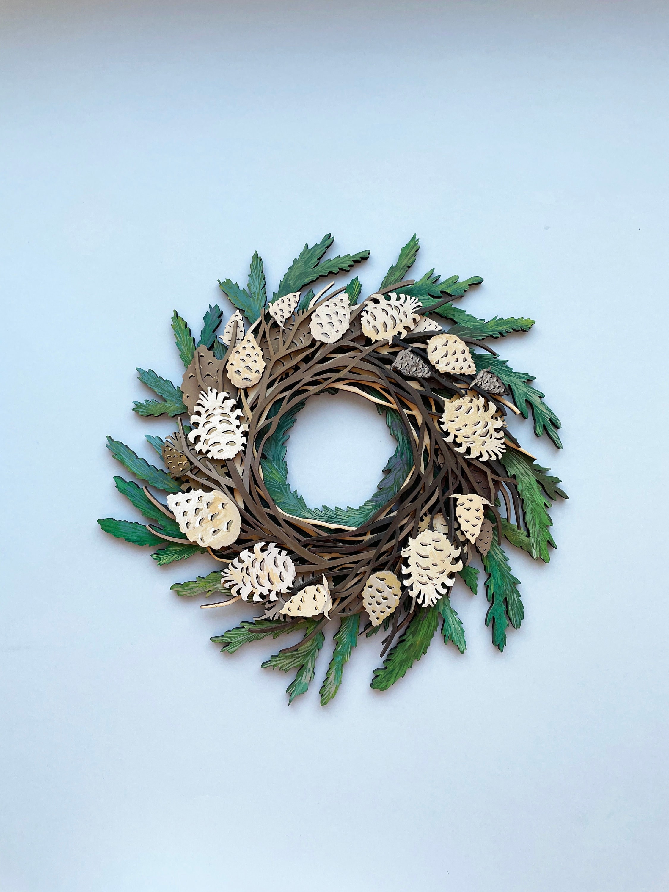 "Create a lovely Christmas wreath with this pinecone wreath SVG. Perfect laser cut files and la...