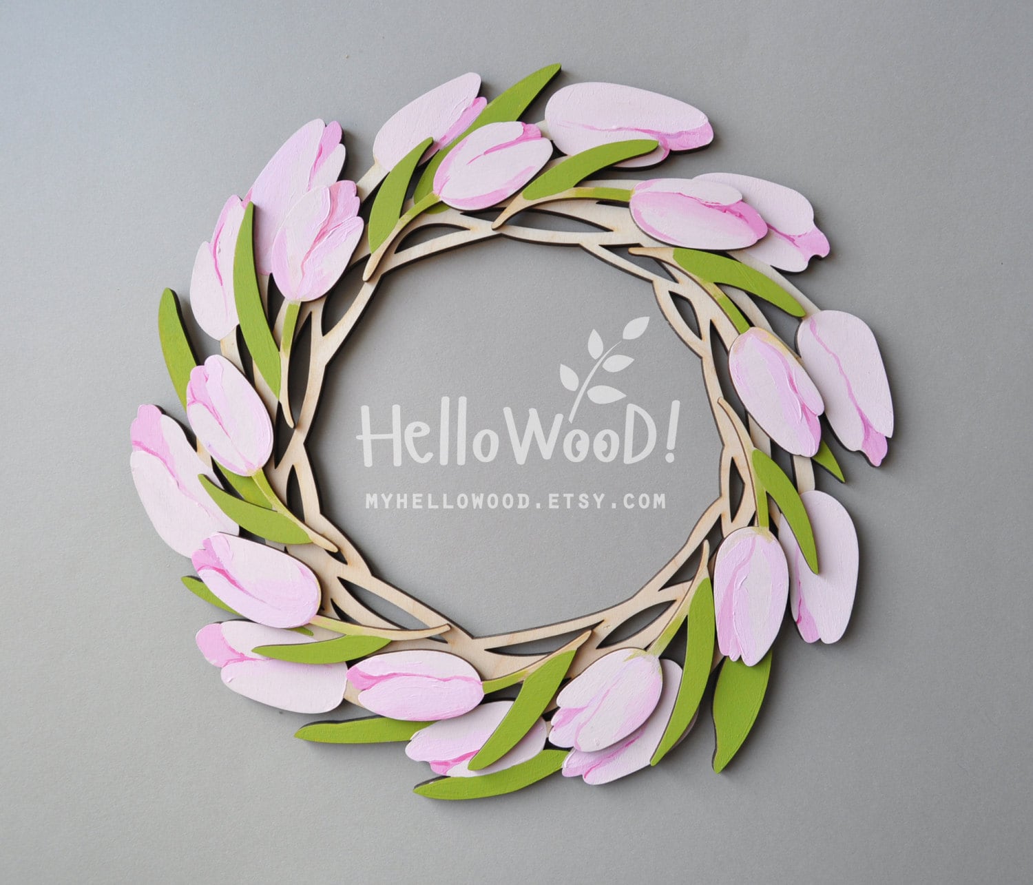 Wreath svg tulip wreath ornament svg laser cut files easter wreath ...