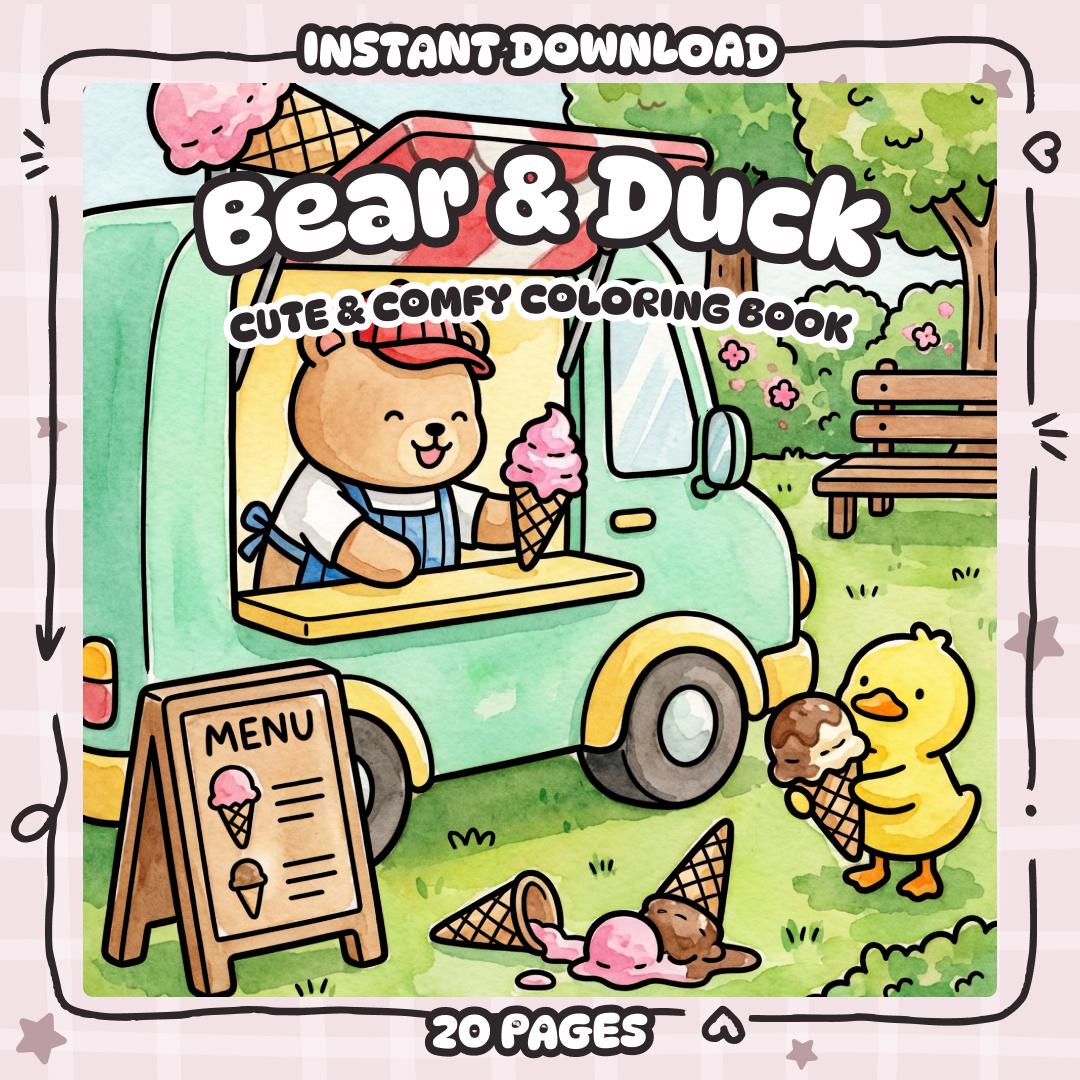 Bear and Duck Coloring Book, Bold and Easy Coloring Pages, Cute Coz...